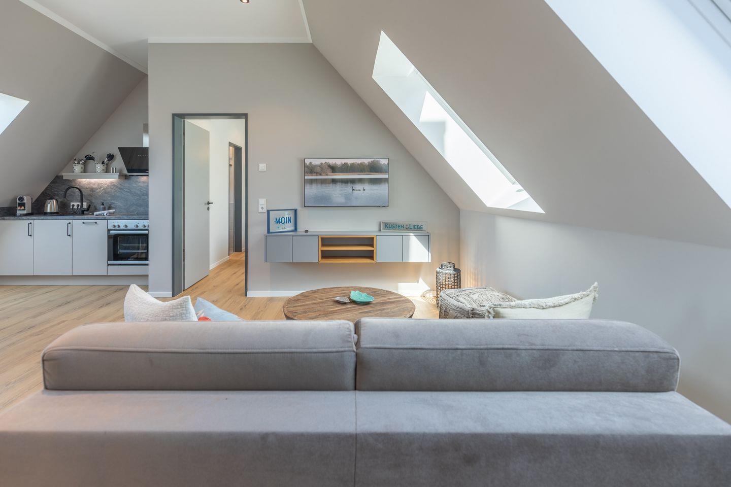 Modernes, barrierearmes Apartment am Husumer Hafen mit Fußbodenheizung, WLAN und Küche – ideal für einen entspannten Aufenthalt in der Altstadt.