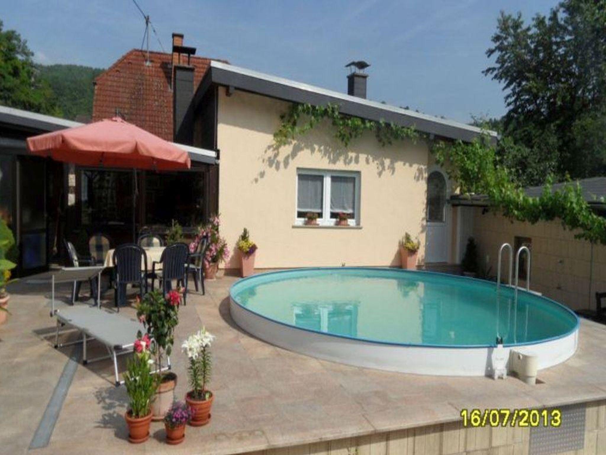 Den Swimmingpool und die rustikale Grillhütte können sie mitbenutzen .