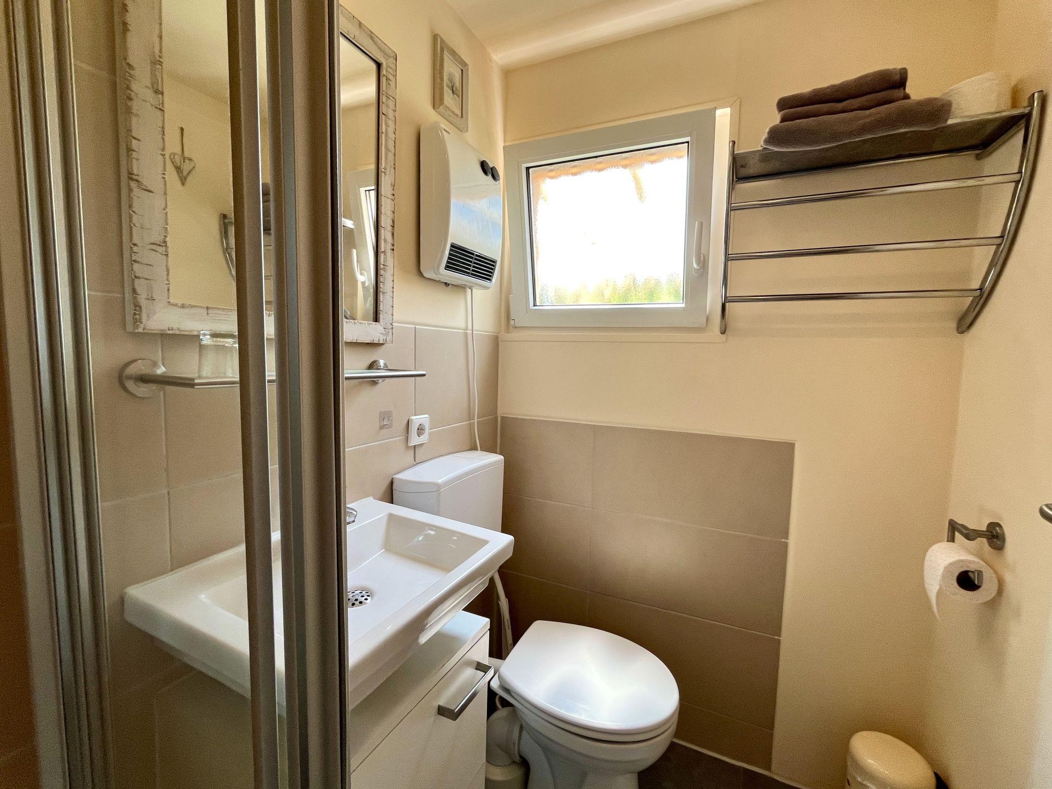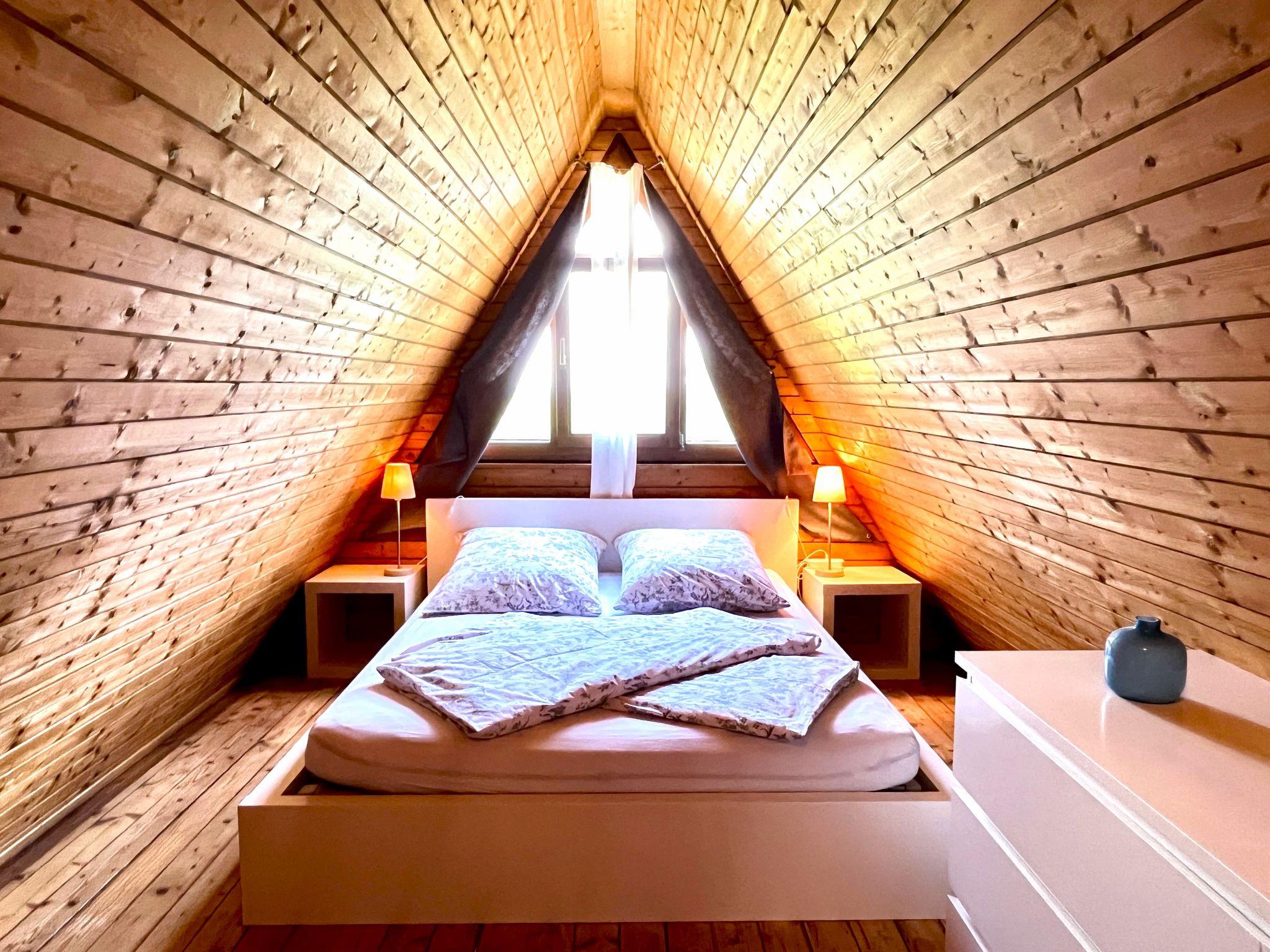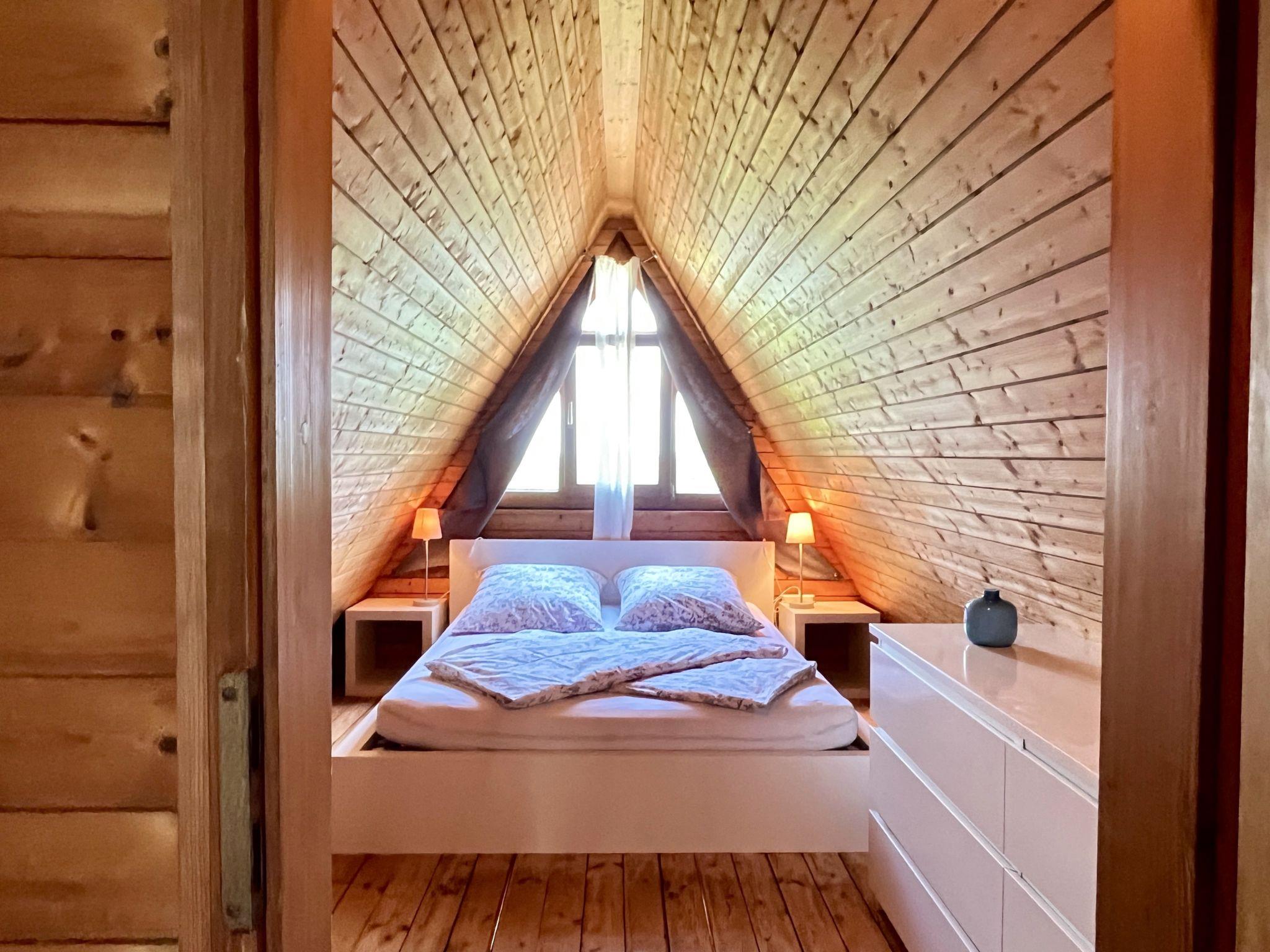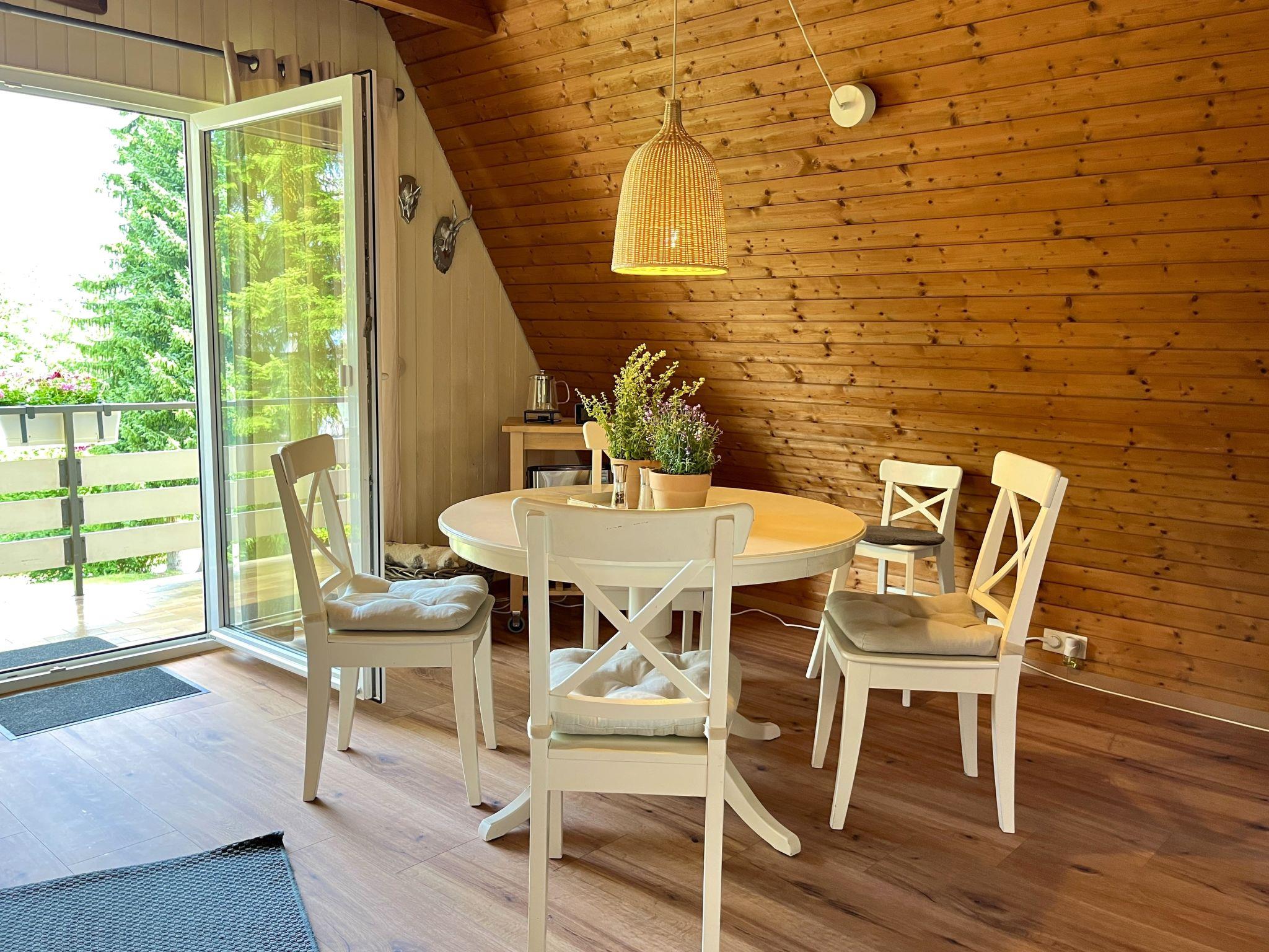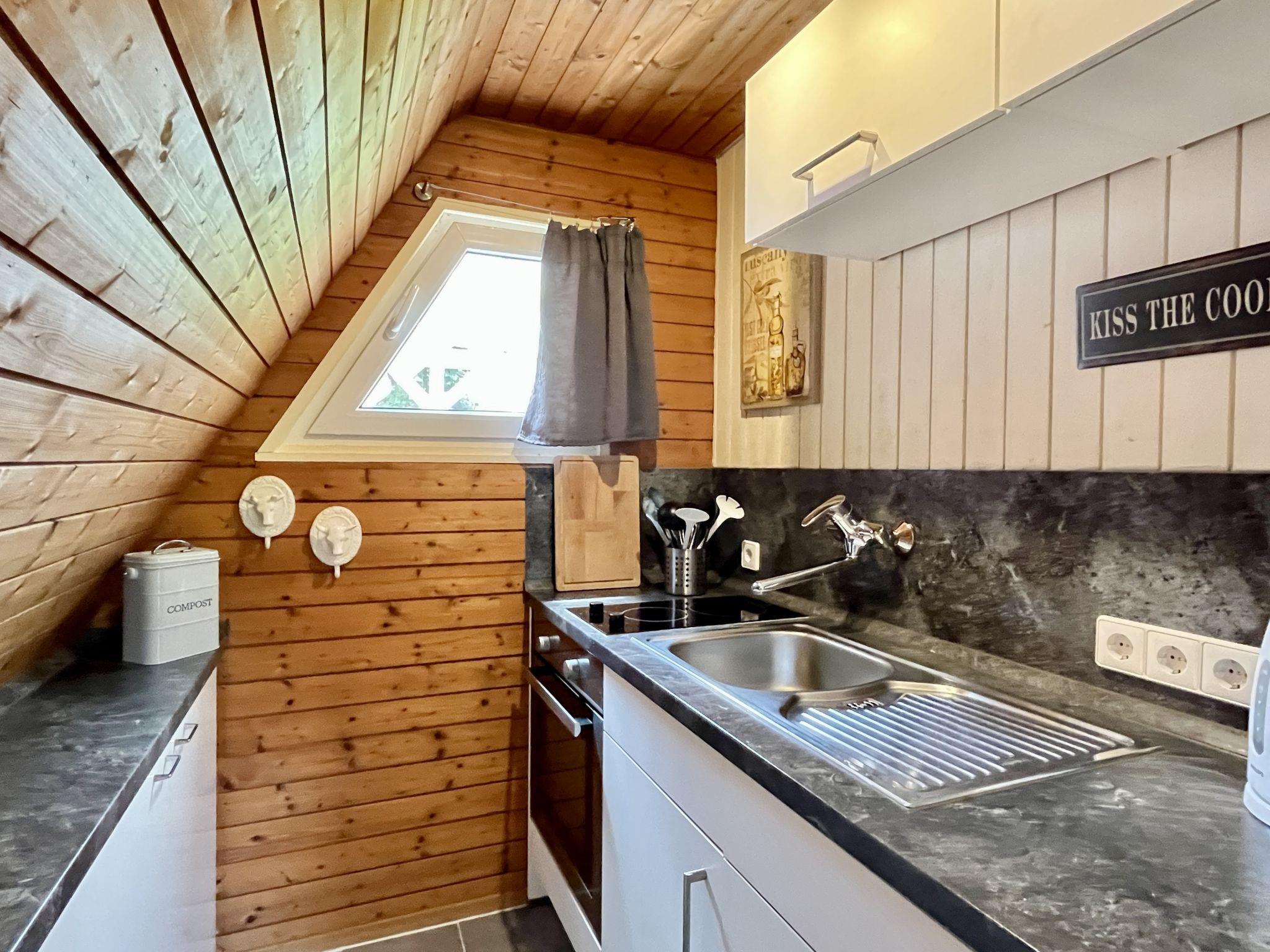 "Ferienhäusle Nina", 3-Zimmer-Haus 60 m2 auf 2 Stockwerken. Geschmackvoll und gemütlich eingerichtet: Wohn-/Esszimmer mit Esstisch und Sat-TV (Flachbildschirm). Ausgang zum Balkon. Kleine, offene Küche (2 Kochplatten, Backofen, Wasserkocher, elektrische Kaffeemaschine). Dusche/WC. Dachgeschoss: (steile Treppe) 1 abgeschrägtes Zimmer mit 2 Betten. 1 abgeschrägtes Zimmer mit 1 Doppelbett. E-Heizung. Balkon, Terrasse teilweise überdacht. Terrassenmöbel, Gartengrill, Liegestühle. Schöne Sicht auf die Landschaft. Zur Verfügung: Kinderhochstuhl, Babybett. Internet (WLAN, gratis). Parkplatz. Bitte beachten: Nichtraucher-Unterkunft. Maximal 2 Haustiere/Hunde erlaubt. Rauchmelder.