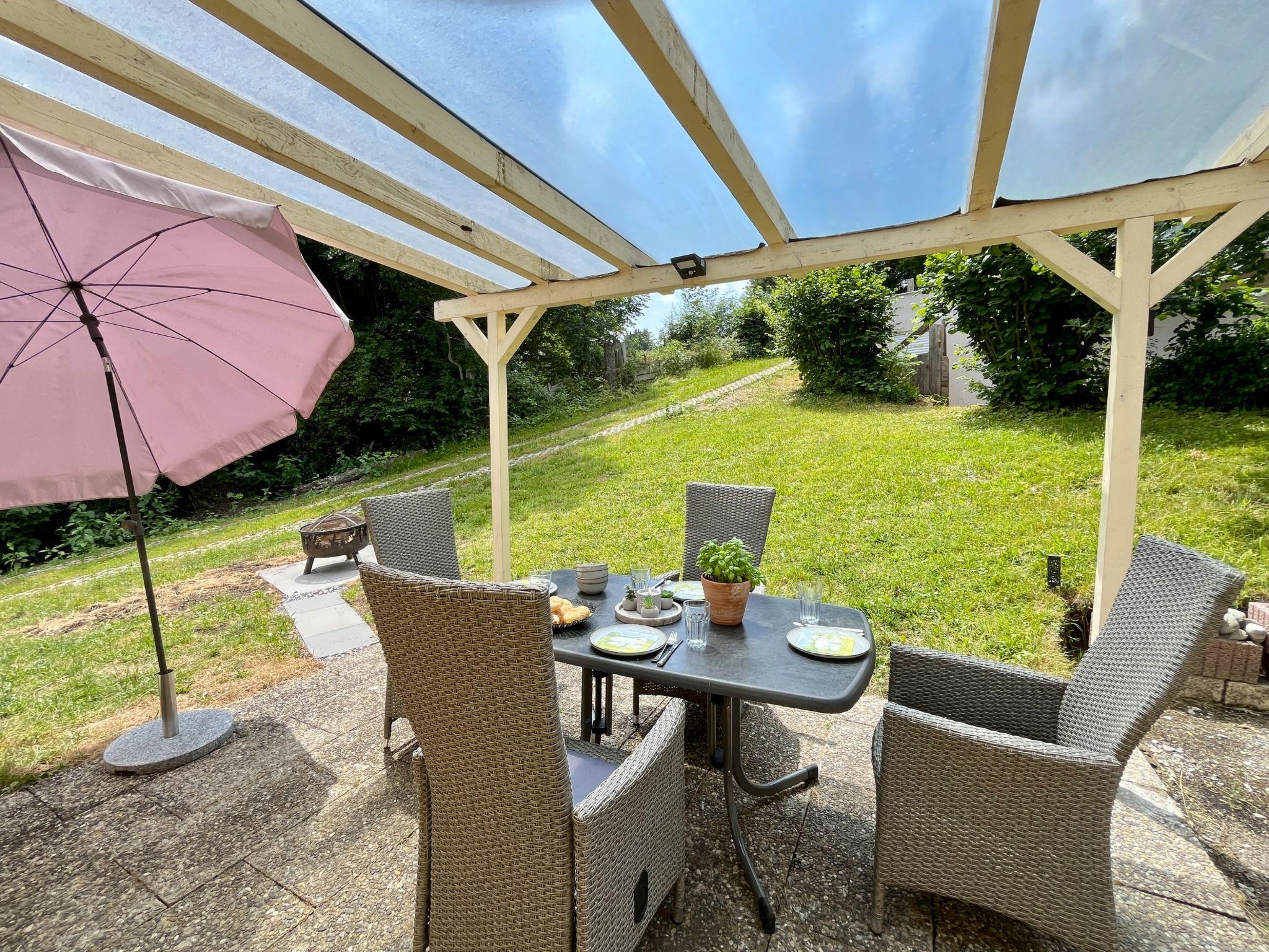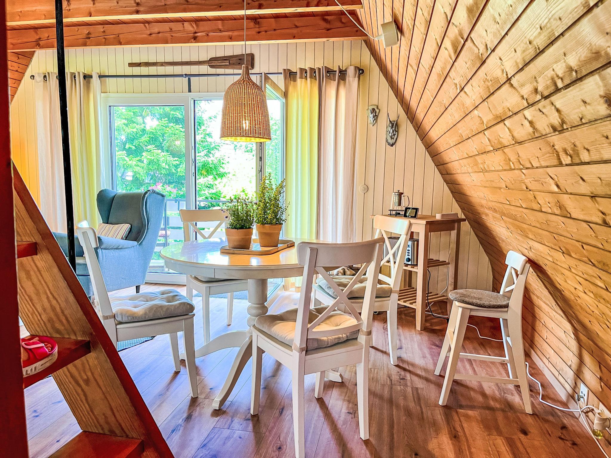 Feriensiedlung "Pfrungen". Oberhalb von Illmensee, 1.8 km vom Zentrum von Illmensee, 30 km vom Zentrum von Meersburg, 55 km vom Zentrum von Lindau, am Hang, 1.8 km vom See. Zur Alleinbenutzung: Grundstück 200 m2 mit Rasen und Bäumen. Einkaufsgeschäft 1.8 km, Bushaltestelle "Pfrungen Abzwg. Feriendorf" 850 m, Bahnstation "Überlingen" 29 km. Golfplatz (9 Loch) 7 km.