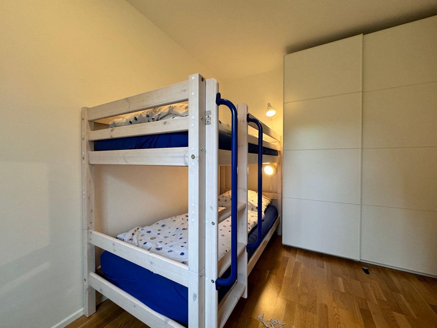 Diese charmante Wohnung ist ideal für Familien und bietet Platz für bis zu 4 Personen (2 Erwachsene + 2 Kinder). Sie verfügt über ein gemütliches Schlafzimmer mit einem komfortablen Doppelbett sowie ein separates Kinderzimmer mit einem Stockbett, das perfekt für die Kleinen geeignet ist.
