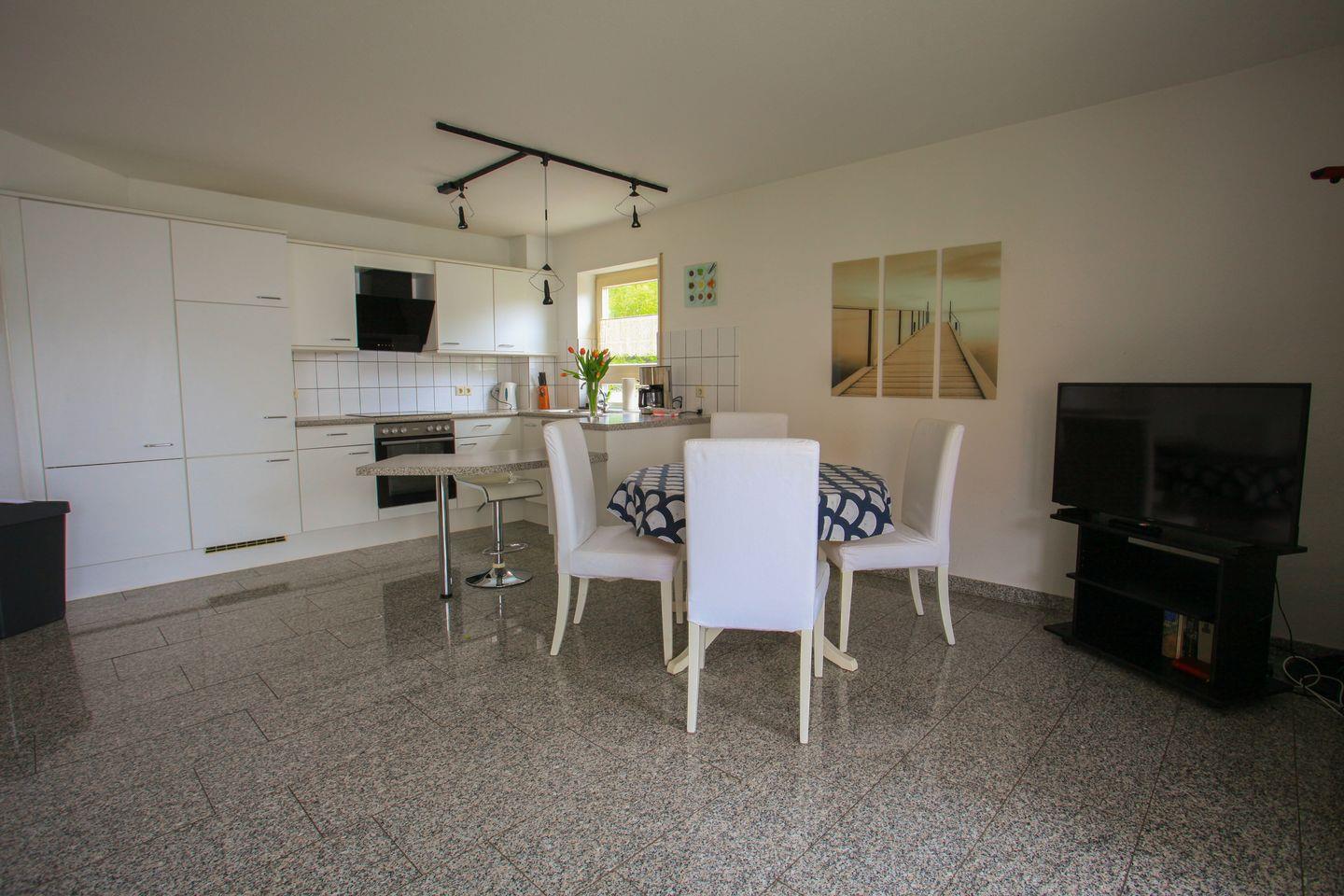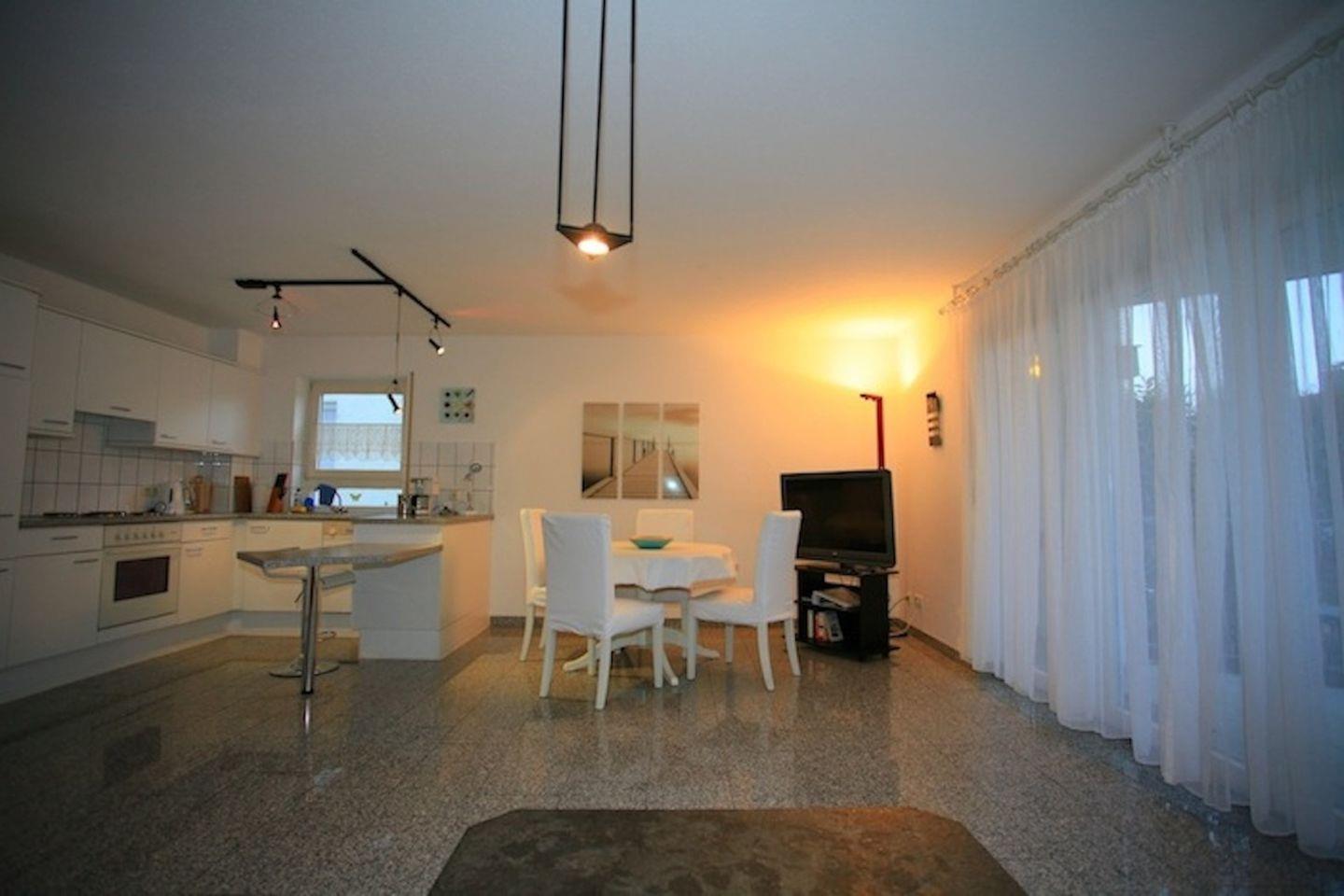 Die Ferienwohnung wurde liebevoll und hochwertig ausgestattet und bietet Platz für bis zu 4 Personen. Vom Eingangsbereich gelangen Sie in alle Räumlichkeiten: ein großzügiger Wohn-/Essbereich mit offener Küche und Theke, ein Schlafzimmer mit gemütlichem Doppelbett sowie eine Schlafcouch im Wohnbereich, die zwei weiteren Personen Platz bietet. Das Tageslichtbad ist mit Dusche, WC, Waschbecken und einer kleinen Waschmaschine ausgestattet.