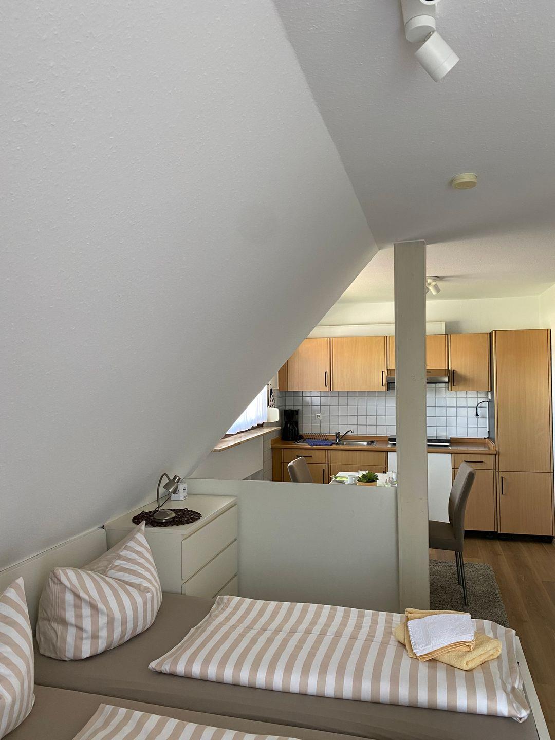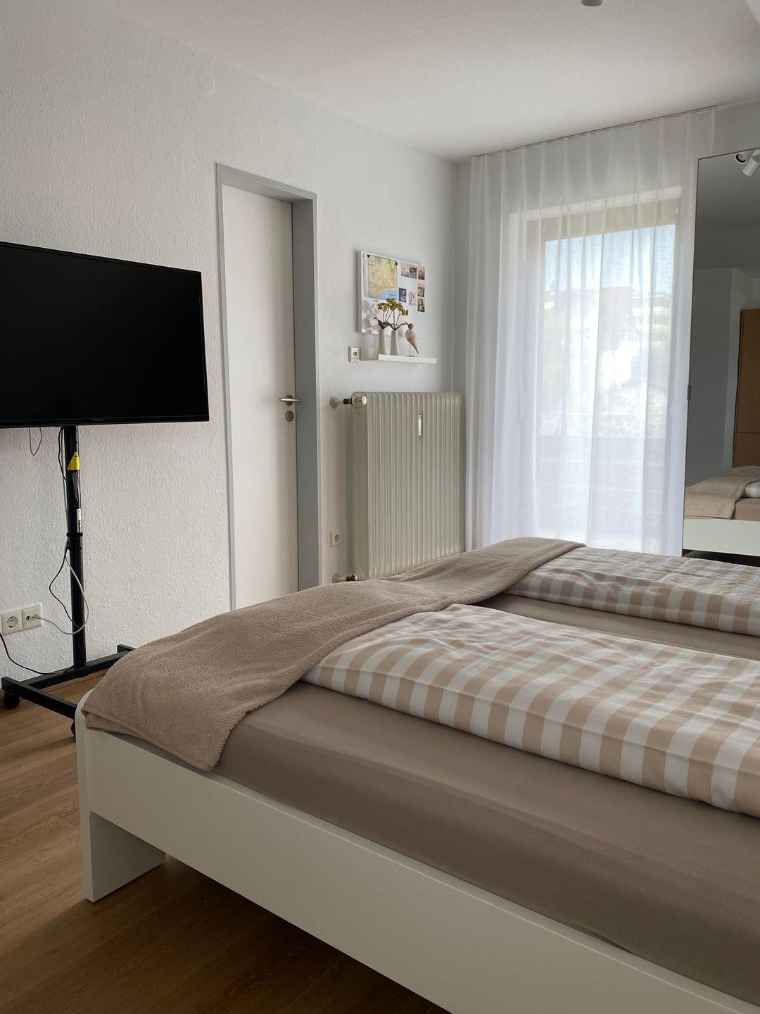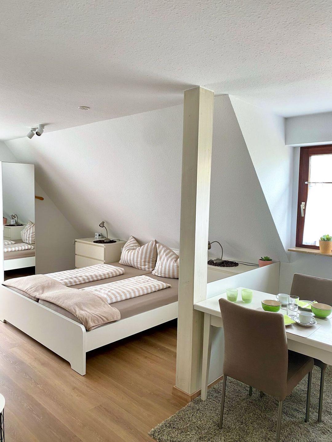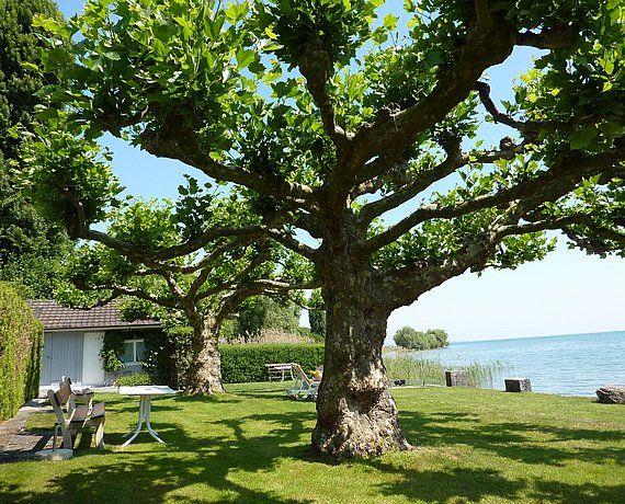 In ruhigen Naturtönen stilvoll eingerichtet, sorgt Ihr Urlaubszuhause für entspannte und erholsame Tage. Highlight ist das idyllische Seegrundstück, das allen Hausgästen offensteht. Mit verschiedenen Sitzgelegenheiten, Liegen und einem Naturkiesstrand. Sie baden in Trinkwasserqualität mit Blick auf die imposanten Schweizer Berge gegenüber. Nach einem erlebnisreichen Tag lässt sich der Abend dort im Sonnenuntergang verbringen. Das Appartment ist modern und geschmackvoll eingerichtet und verfügt über ein bequemes Doppelbett sowie einen kleinen Essbereich und eine Kitchenette mit Kühlschrank und Zwei-Platten-Induktionsherd. Ein Flachbild-TV und WLAN sind ebenfalls vorhanden.