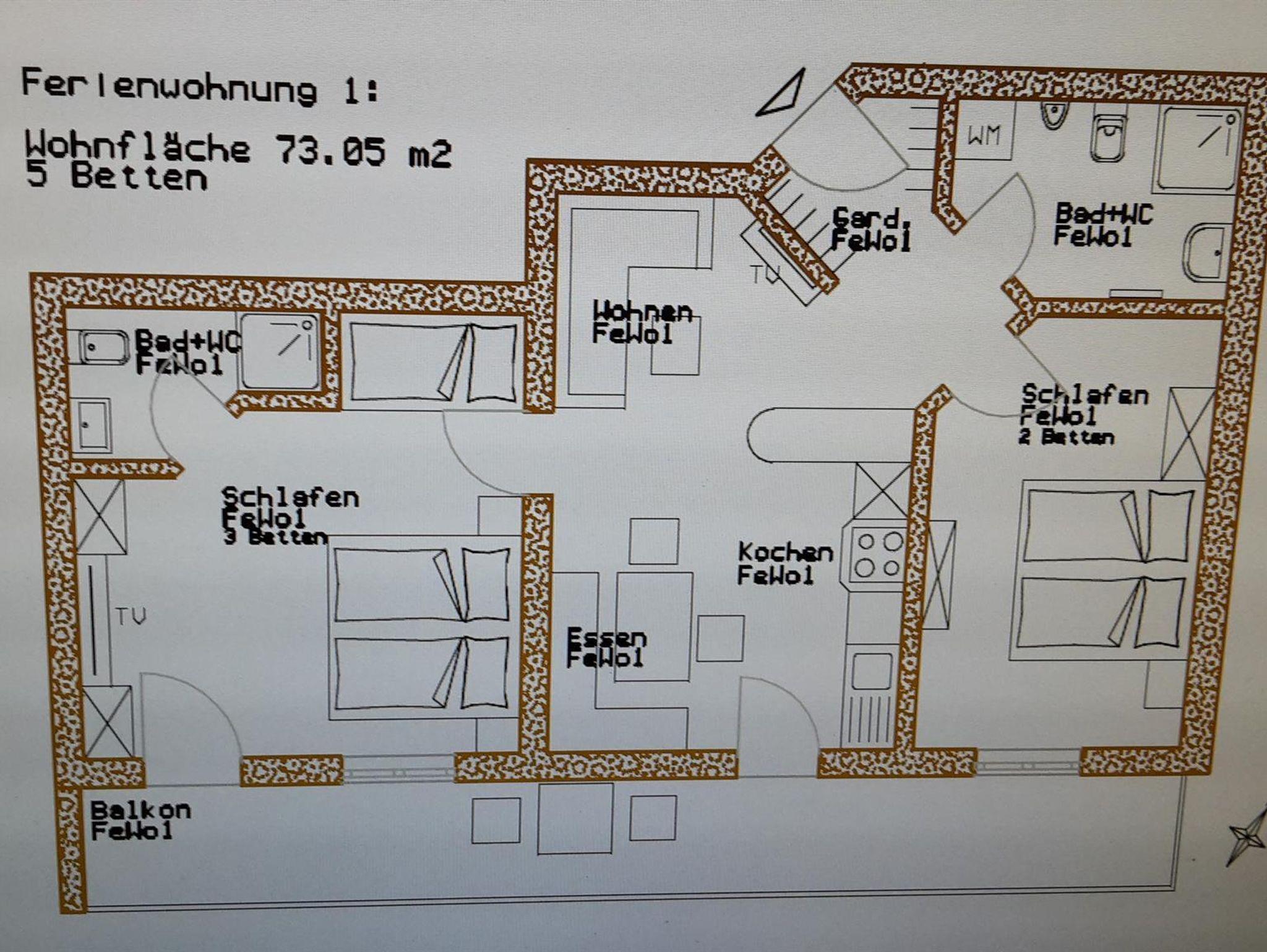 Ferienwohnung II (bis 6 Personen) Neubau 2022 mit 3 Schlafzimmern und 2 Bäder, sowie eine Küche und Wohnzimmer mit Eckbank und einer großen Eckcouch. Wunderbare und große Terrasse.