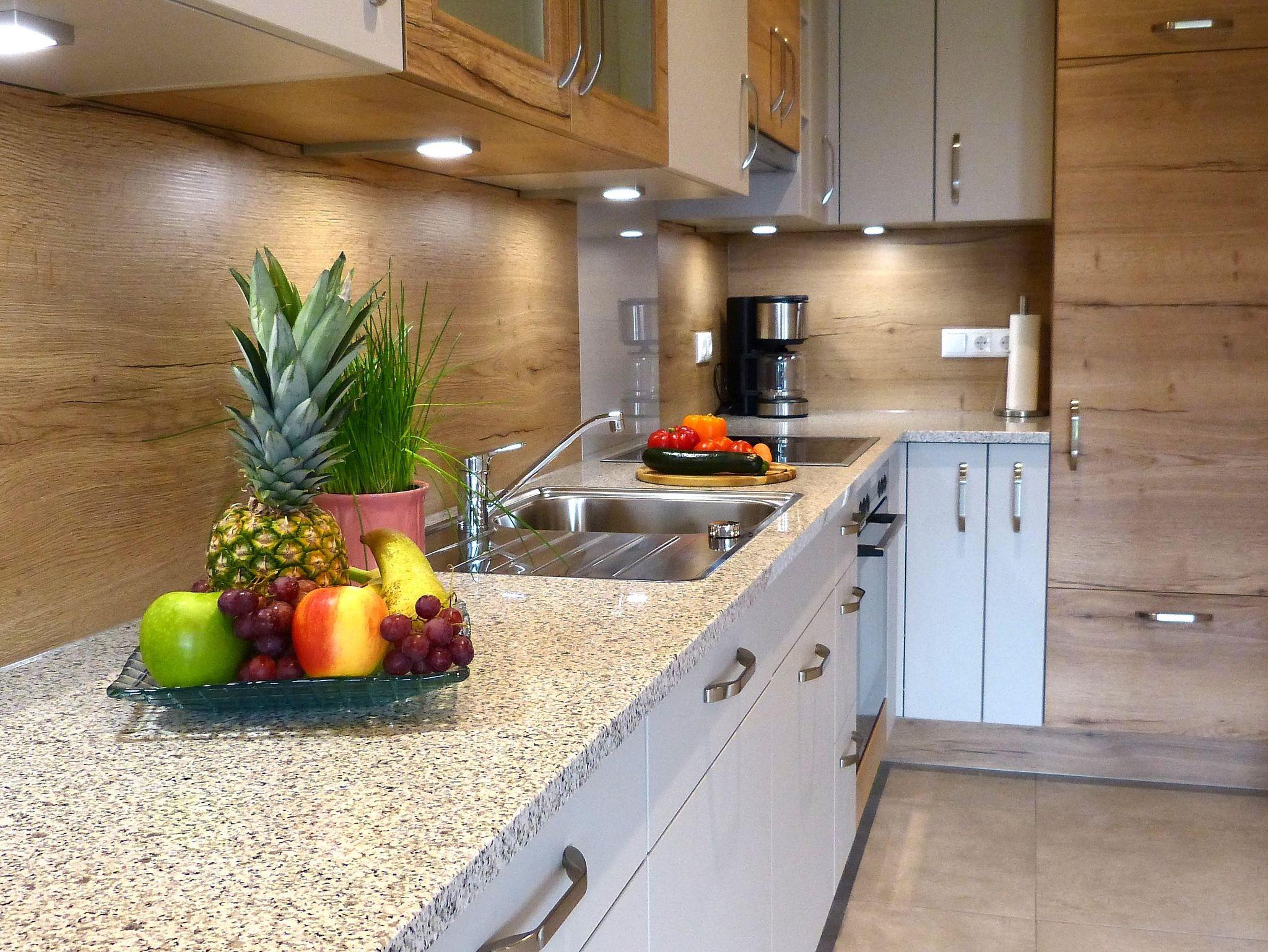 • voll ausgestattete Küche mit Herd und Backofen, Geschirrspüler, Kühlschrank,