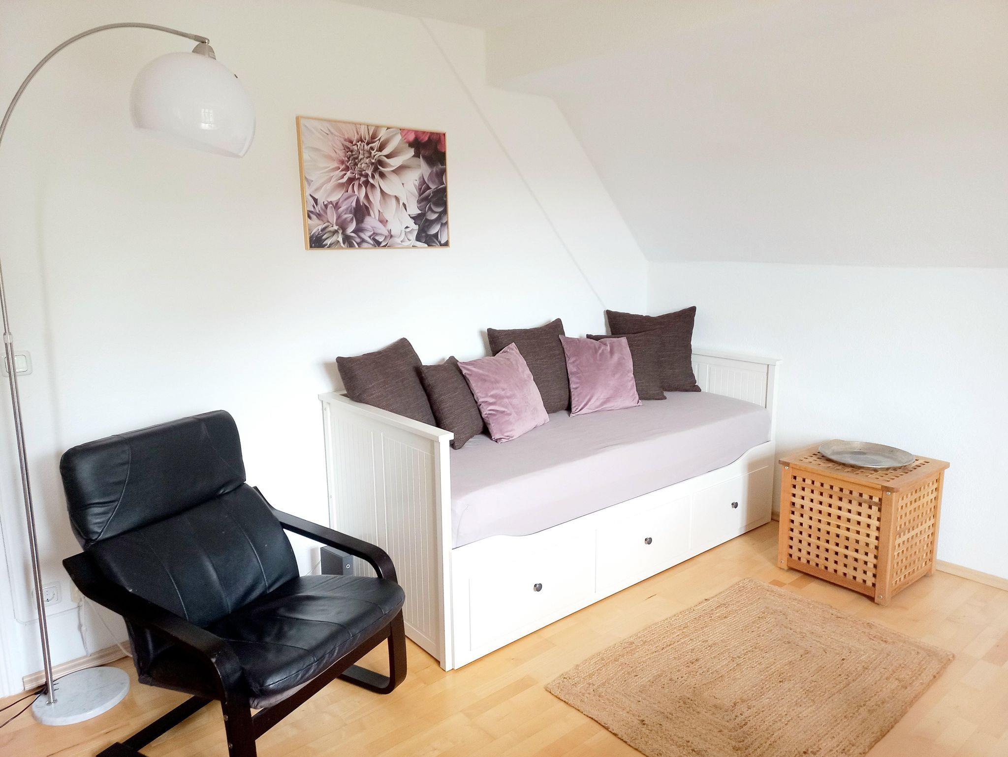 2 zusätzliche Schlafmöglichkeiten zu den 4 Betten sind auf der ausziehbaren Wohnzimmercouch (richtige Matratzen) vorhanden.