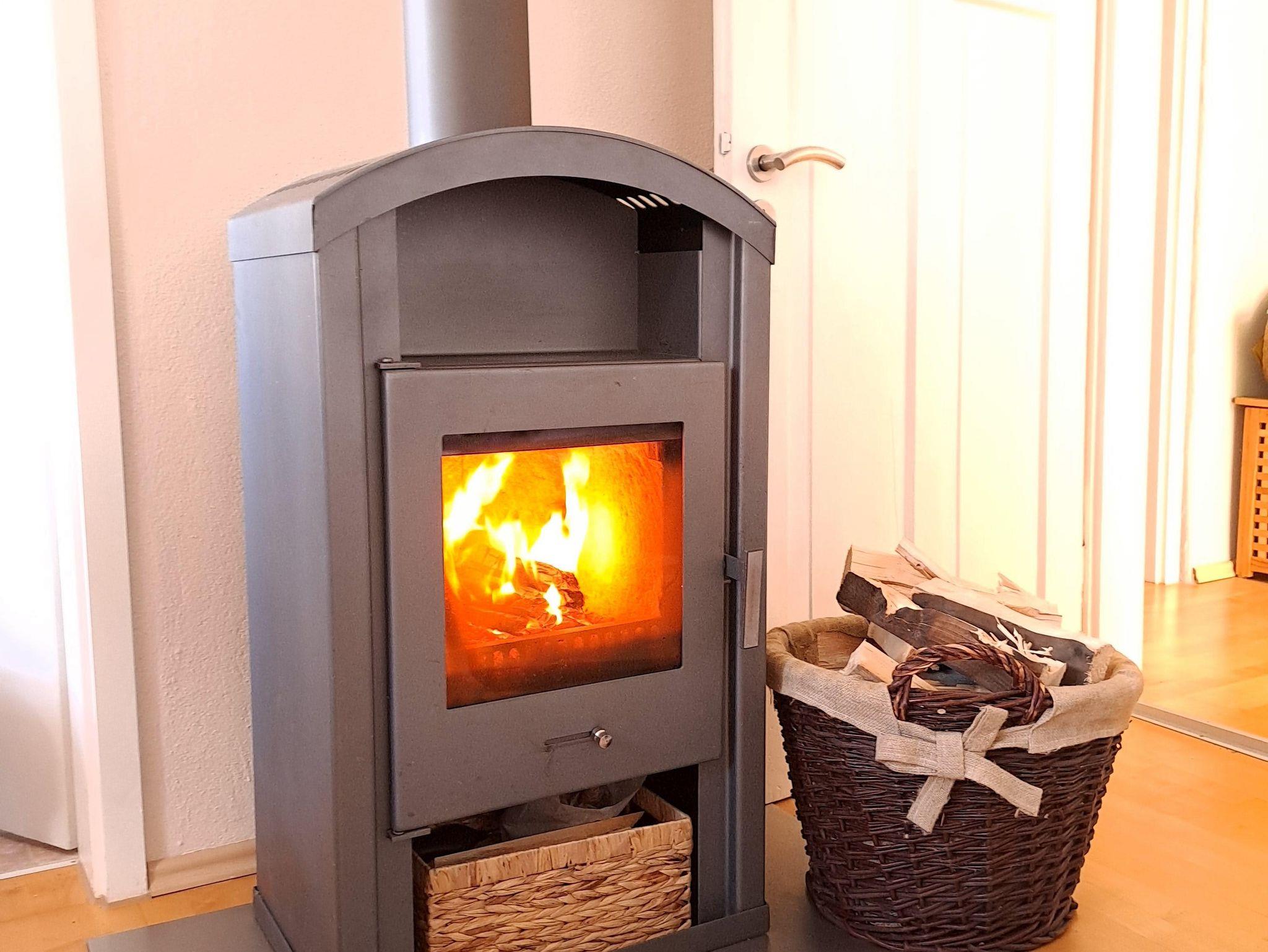 Wohnzimmer: Schwedenofen, Flachbild-TV, großer Esstisch und 6 Sitzgelegenheiten, ausziehbares Couchbett (mit richtigen Matratzen)