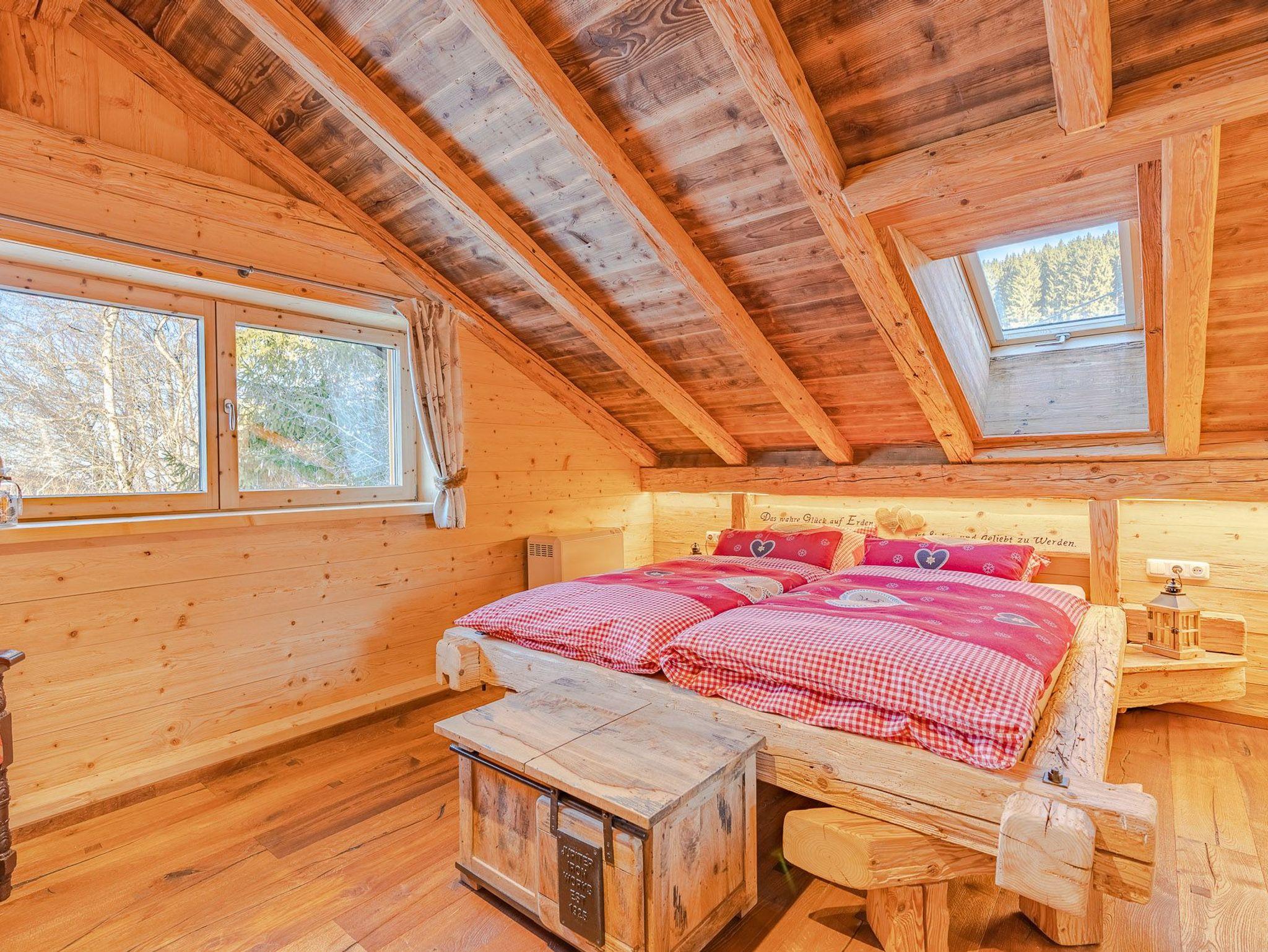 Die Ferienwohnung liegt im Dachgeschoss und hat ca.120m² Wohnfläche. Der besondere Hüttencharakter entsteht durch die rustikalen Schindeldächer, die das Schlafzimmerhüttle und das WC-Häusle schmücken. Im großem Wohn- Essbereich mit Kaminofen können Sie die Ruhe und die Aussicht in die Natur genießen. Zur Wohnung gehört ein Schlafzimmer mit Doppelbett, ein Schlafzimmer mit Stockbett sowie ein Bett auf der Empore. Zur Wohnung gehört die Nutzung der Scheune mit Billardtisch, Tischkicker, Tischtennisplatte und viel mehr.