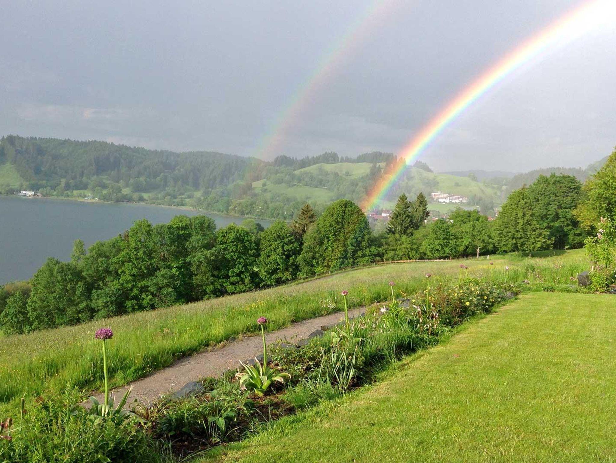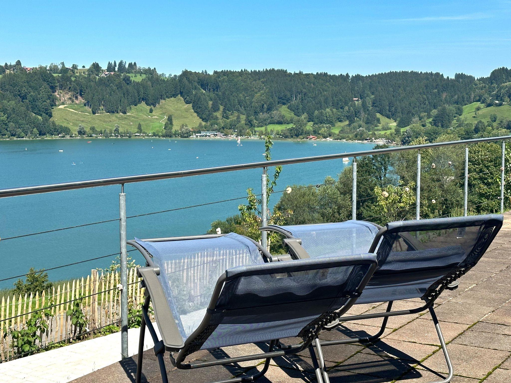 Suchen Sie Ruhe und Erholung abseits von Hektik und Straßenverkehr? Dann sind Sie bei uns richtig. Unser schönes Haus liegt am Hang über dem Alpsee in Alleinlage und doch nur 5 Autominuten von Immenstadt entfernt. Es erwarten Sie 4 gemütliche Ferienwohnungen für 2-7 Personen. Mit zum Teil 3 Schlafzimmern und zwei Badezimmern auch für die große Familie bestens geeignet. Genießen Sie die Panoramaaussicht über den Großen Alpsee von jeder Wohnung. Wenige Gehminuten zum privaten Badeplatz (auch für Hunde)und zum Angeln. Eine gute Stunde wandern Sie zur Alpsee-Bergwelt, Deutschlands längster Sommerrodelbahn. Wandern Sie direkt vom Haus im Naturpark Nagelfluh auch als Skitour oder Schneeschuhtour ein Erlebnis. Die große Panoramaterrasse und der Freisitz am Apfelbaum sind Logenplätze bei einer Regatta.