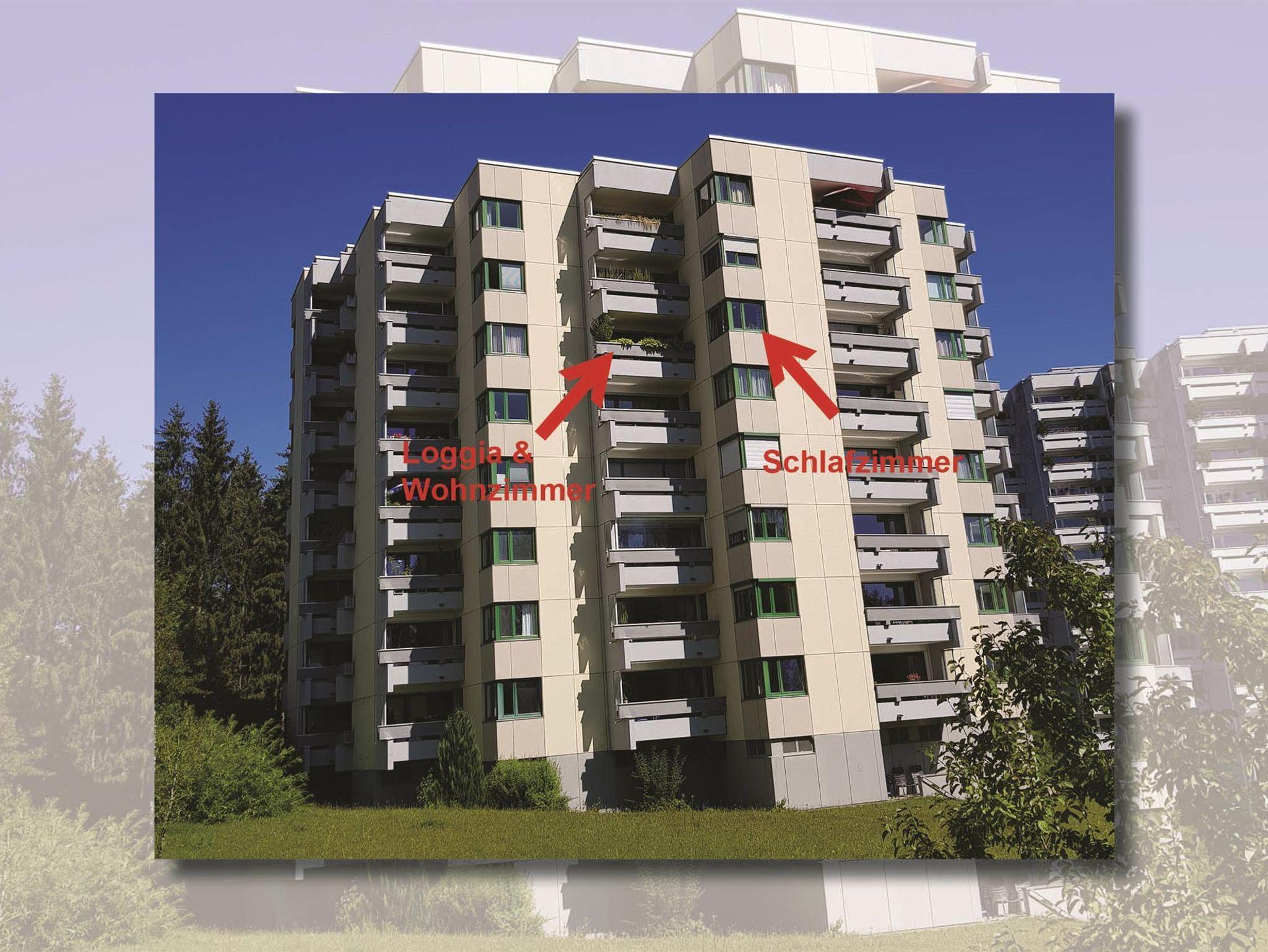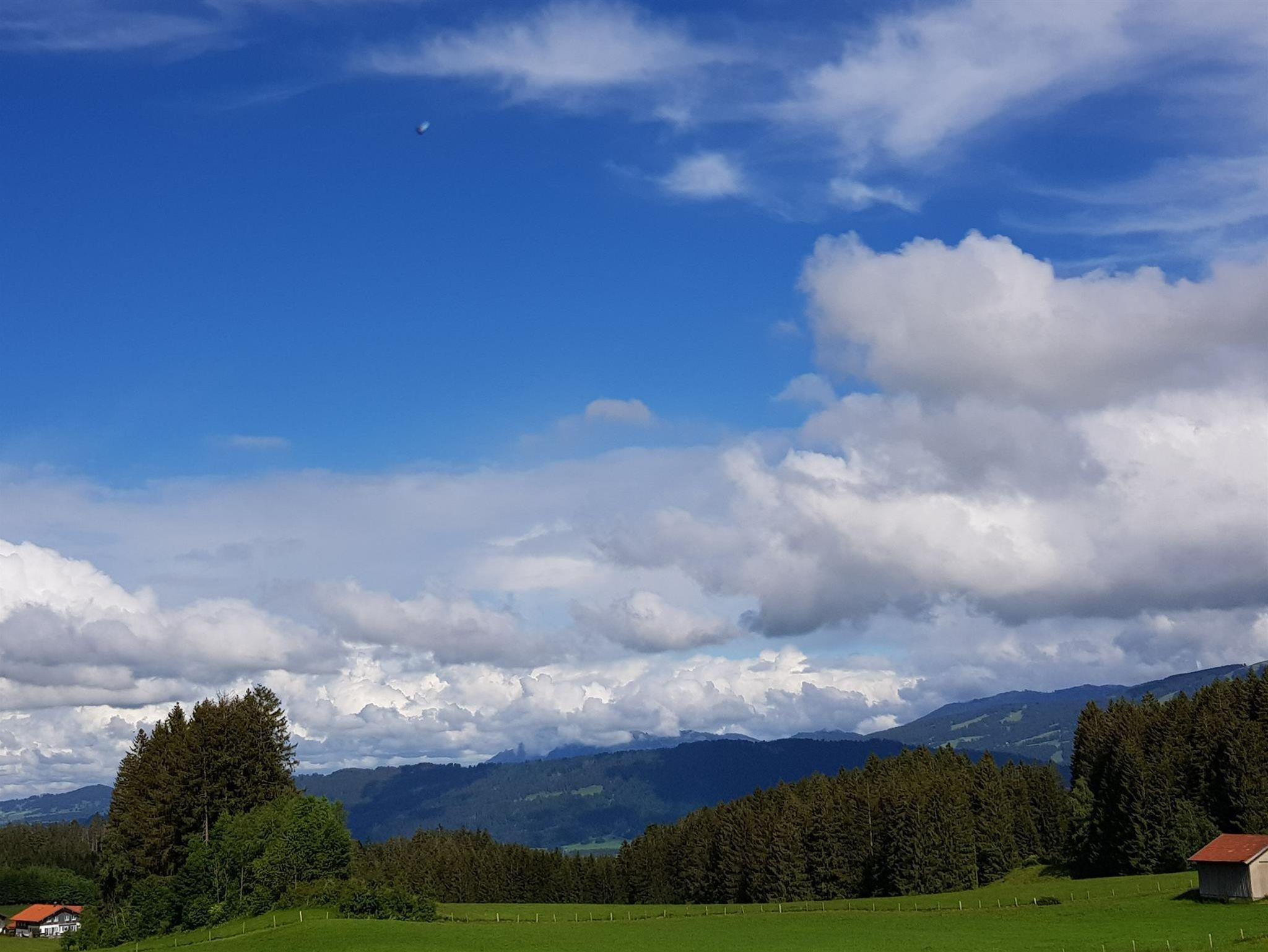 Das Apartment besitzt eine 6 qm Loggia in Südlage mit direktem Blick auf das mächtige Bergpanorama der Alpen. Von hieraus können Sie die Paragleiter beobachten, die vom „Mittag“ (Hausberg von Immenstadt) starten. Von Weitem hört man auch das Läuten der Kuhglocken auf der benachbarten Wiese.