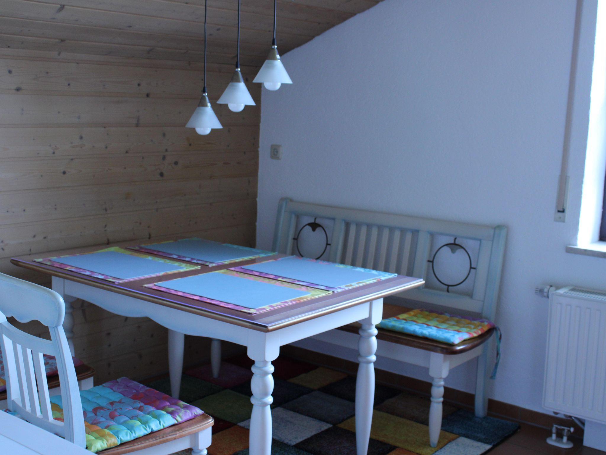 Die Erdgeschoss-Wohnung mit Terrasse und Garten sowie die Dachgeschoss-Wohnung mit 2 Balkonen liegen in einem ruhigen Ortsteil, ca. 2 km von Immenstadt entfernt.