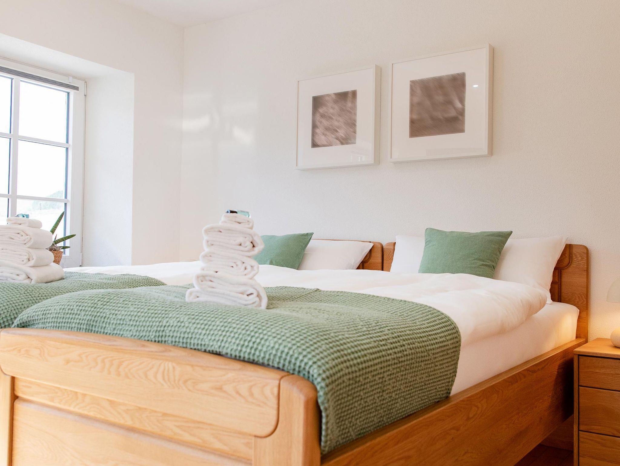 Mit insgesamt 5 Schlafzimmern bietet unser Ferienhaus ausreichend Möglichkeiten für Rückzug und Entspannung. Alle Betten sind mit Bettwäsche ausgestattet. Im Erdgeschoss und im Obergeschoss befindet sich je ein modernes Bad mit Dusche. Alle Zimmer verfügen über Plissees zu Verdunklung und im Dachgeschoss befinden sich zwei individuelle Arbeitsplätze. Ebenso sind alle Zimmer mit Smart-TVs ausgestattet und im ganzen Haus ist freies Wifi verfügbar.