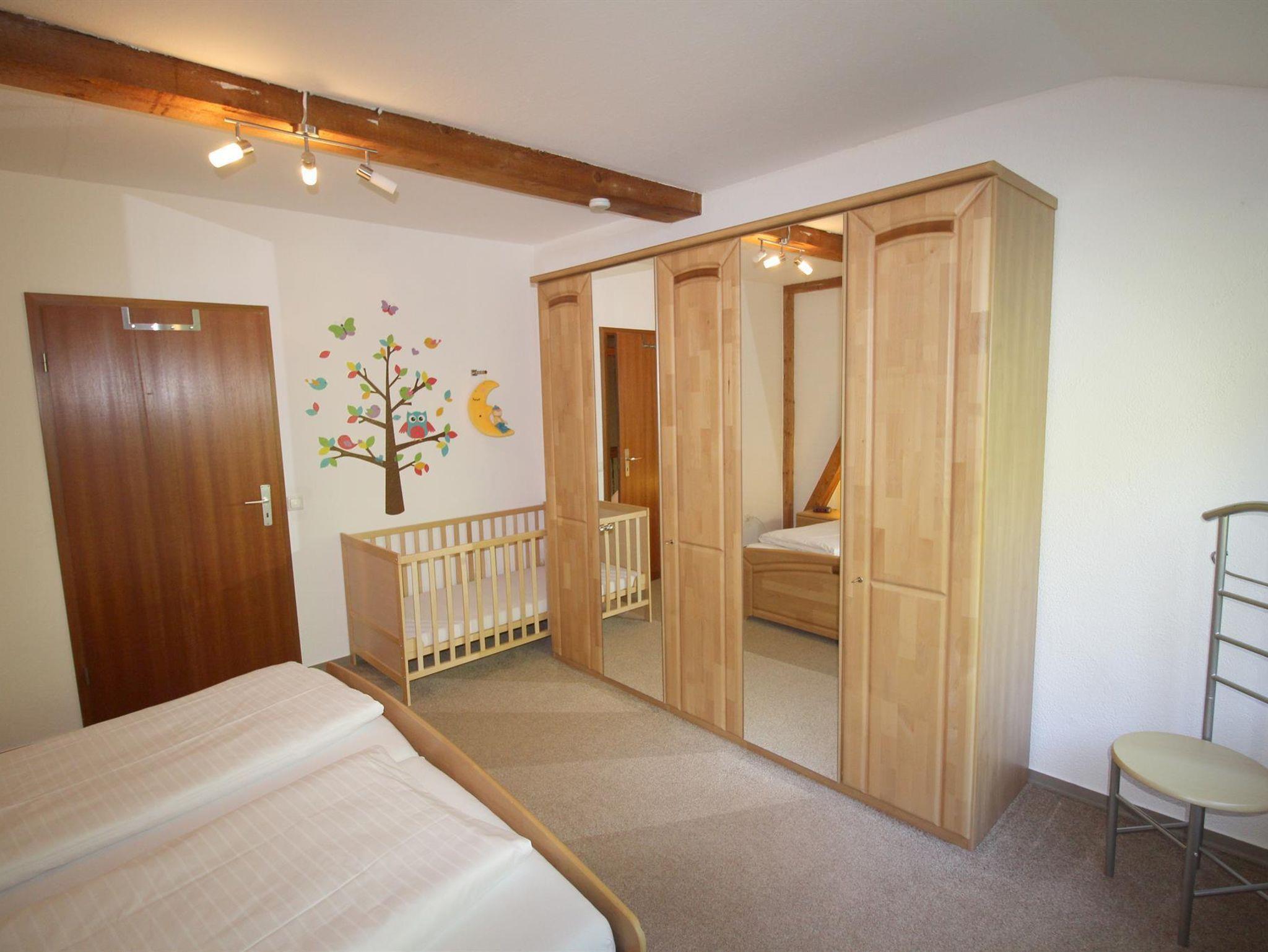 Die Wohnung hat 7 Betten in 3 Schlafzimmern, Diele mit Garderobe, 2 Badezimmer mit Dusche / WC, offene moderne Küche mit Essecke und Wohnzimmer mit Kaminofen.