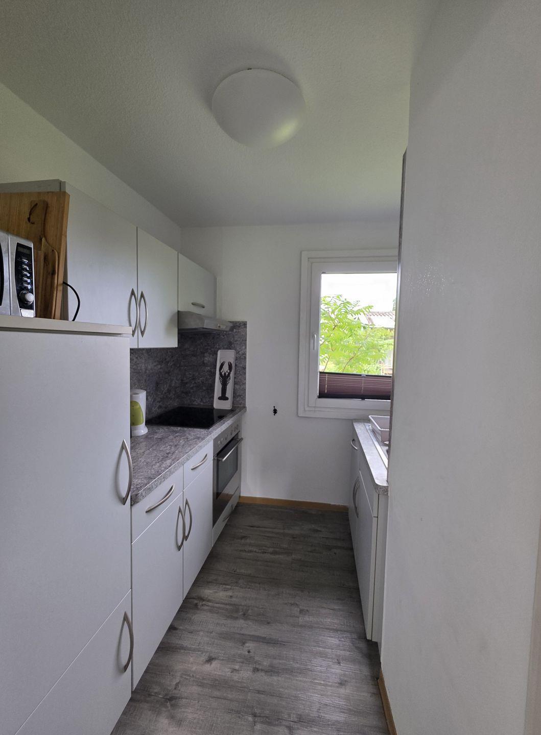 Die Küche verfügt über Herd, Backofen und Kühlschrank (ohne Geschirrspüler).
