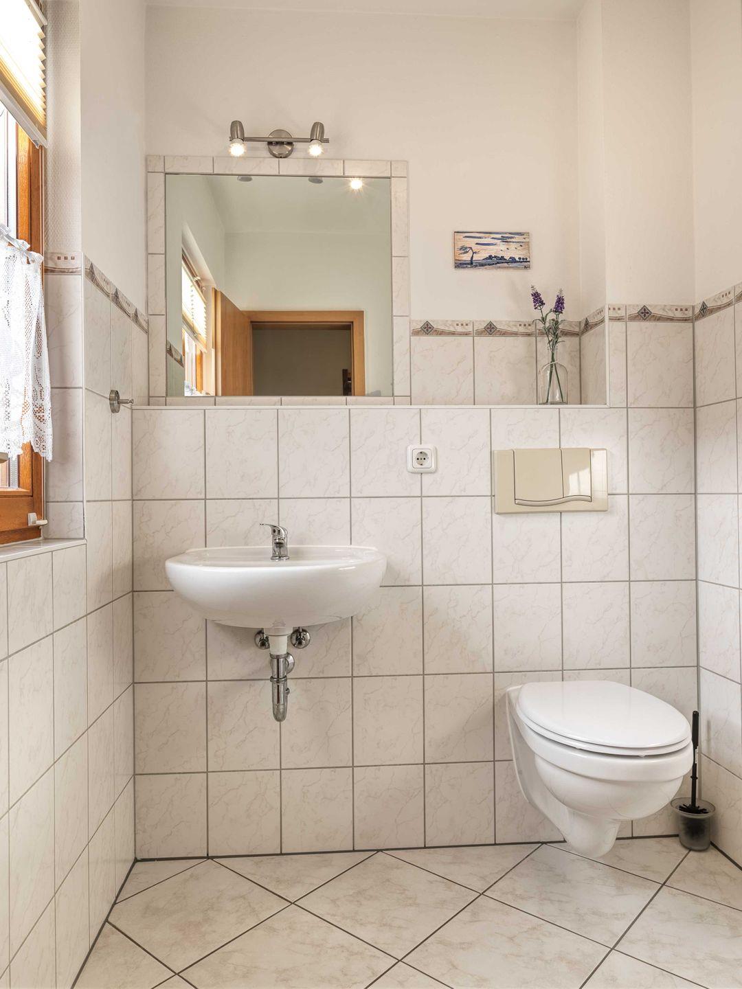 Für Ihren Komfort bietet das Ferienhaus zwei Badezimmer: Ein großzügiges Bad mit Dusche, Badewanne, Waschbecken und WC – ideal für entspannte Stunden – sowie ein separates Gäste-WC.