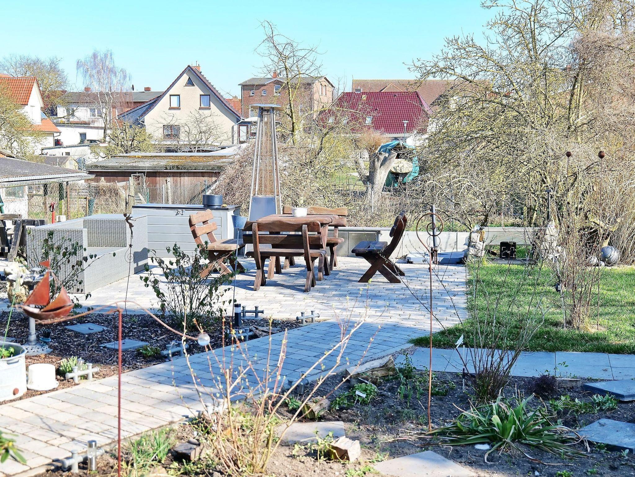 - gemeinschaftliche Terrasse im Innenhof mit Sitzmöbel (Stühle + Tisch) und Grill