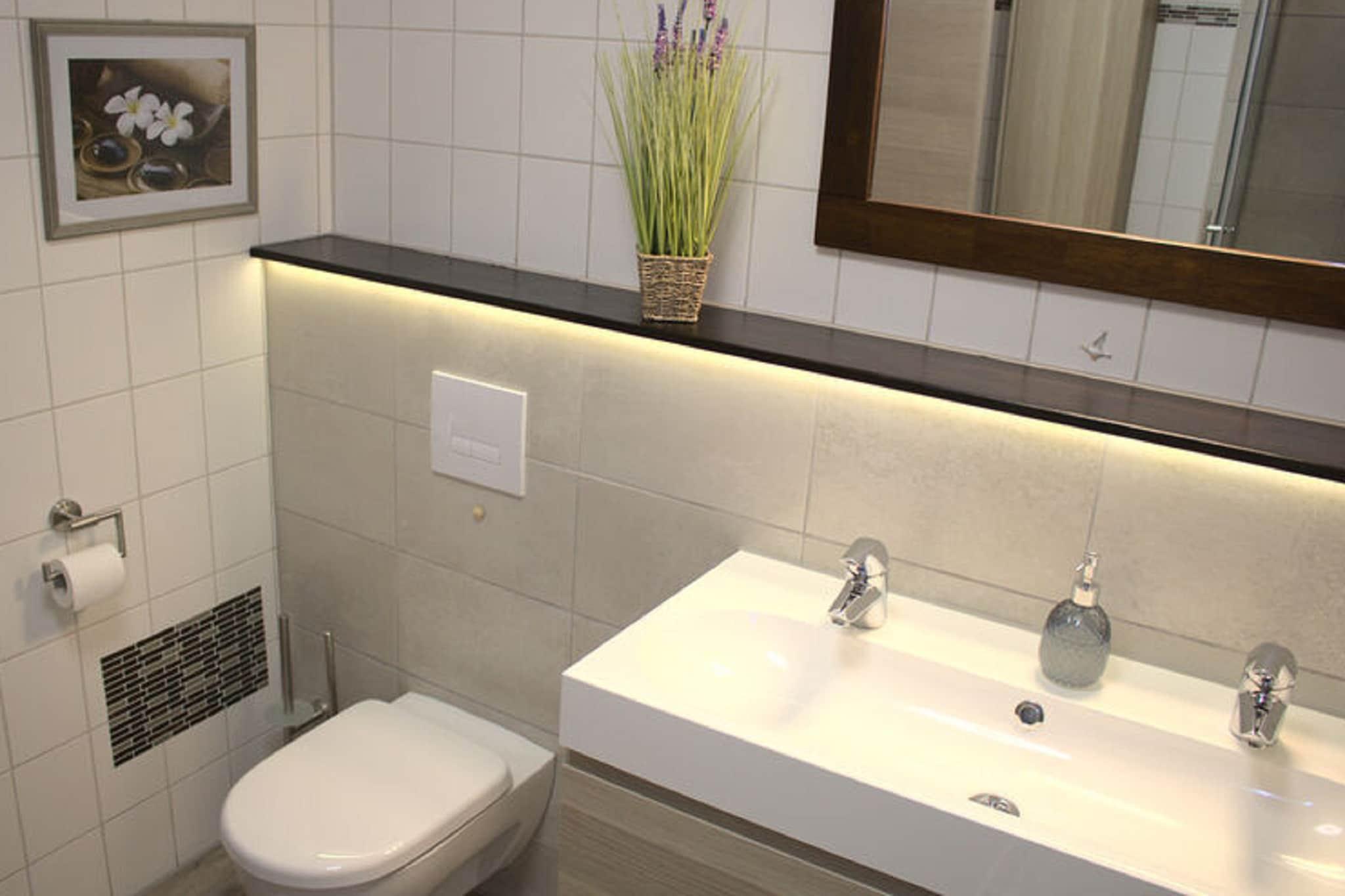 Parterre: (offene Küche(Wasserkocher, Toaster, Kochherd(Ceranfeld), Dunstabzugshaube, Kaffeemaschine(Vollautomat), Backofen, Spülmaschine, Kühl-/Gefrierkombination), Wohn/Esszimmer(Doppelschlafcouch(140 x 190 cm), TV(Flatscreen, smart TV), Esstisch(4 Personen), DVD-Spieler, Radio), Schlafzimmer(Doppelbett king size(180 x 200 cm), TV(Flatscreen)), Badezimmer(Dusche, Waschbecken, Toilette, Waschmaschine, Föhn)) Herd, Reisebett , Badewanne oder Dusche, Heizung, Terrasse(überdacht), Garten, Gartenmöbel, Parkplatz, Sonnenschirm, Kinderbett, Bügelbrett, Markise, Fliegenfenster