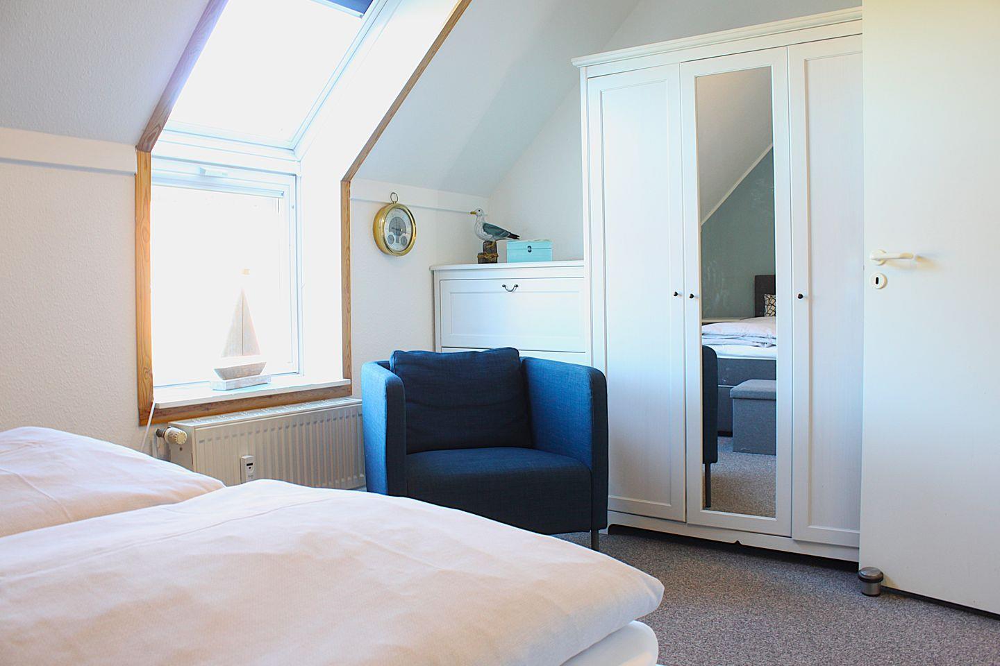 Das separate, helle Schlafzimmer ist mit einem Doppelbett (160x200cm) und genügend Stauraum für Ihre Garderobe möbliert.