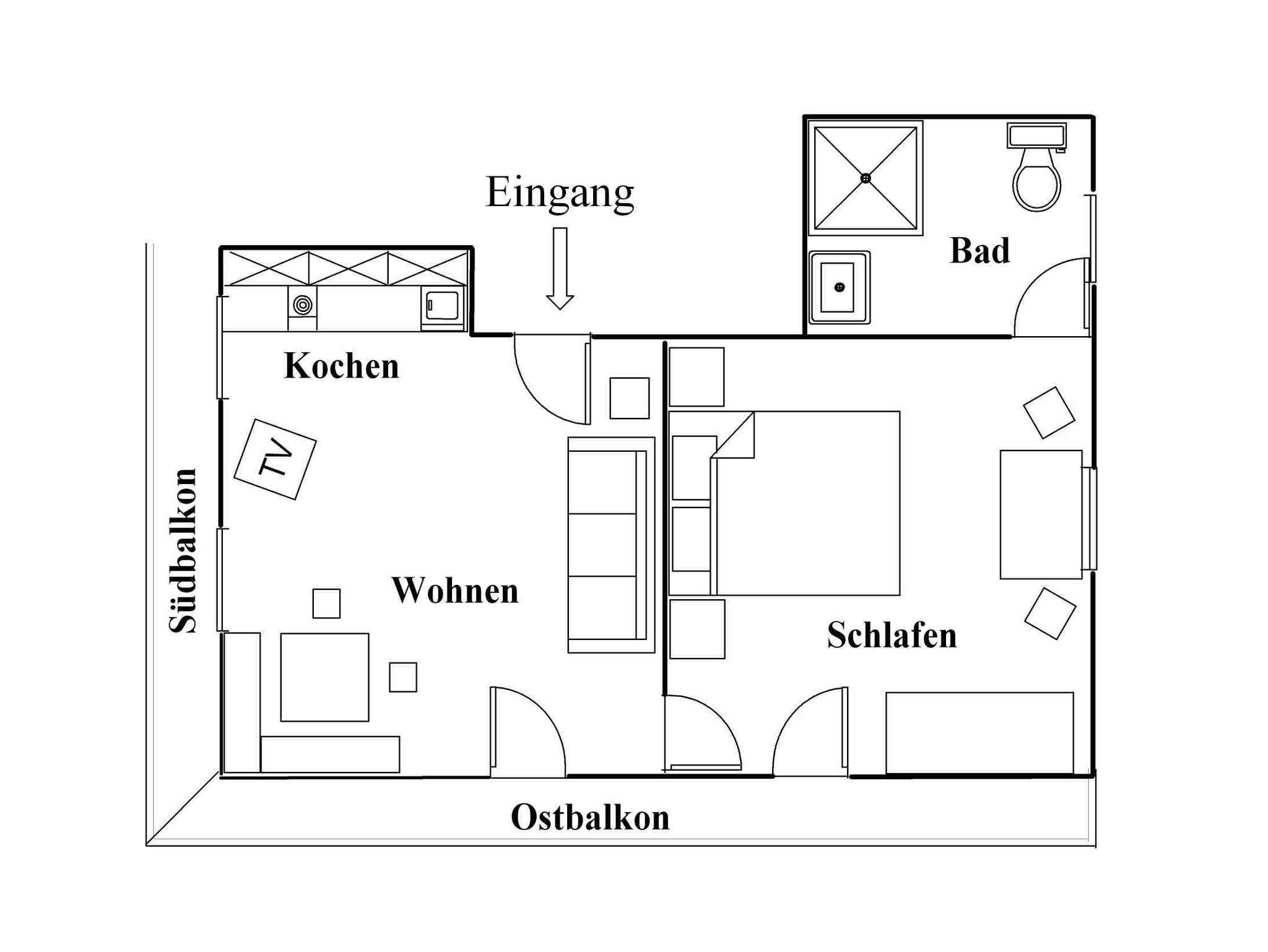 Wir bieten Ihnen 2 gemütliche, im bäuerlichen Stil und modern eingerichtete 2-Raum-Ferienwohnungen für 2 Gäste mit Wohnzimmer, Essbereich mit Küchenzeile, Schlafzimmer und Dusche/WC. Alle Ferienwohnung verfügen über einen Balkon bzw. Terrasse mit Tisch und Stühlen sowie gratis W-LAN!