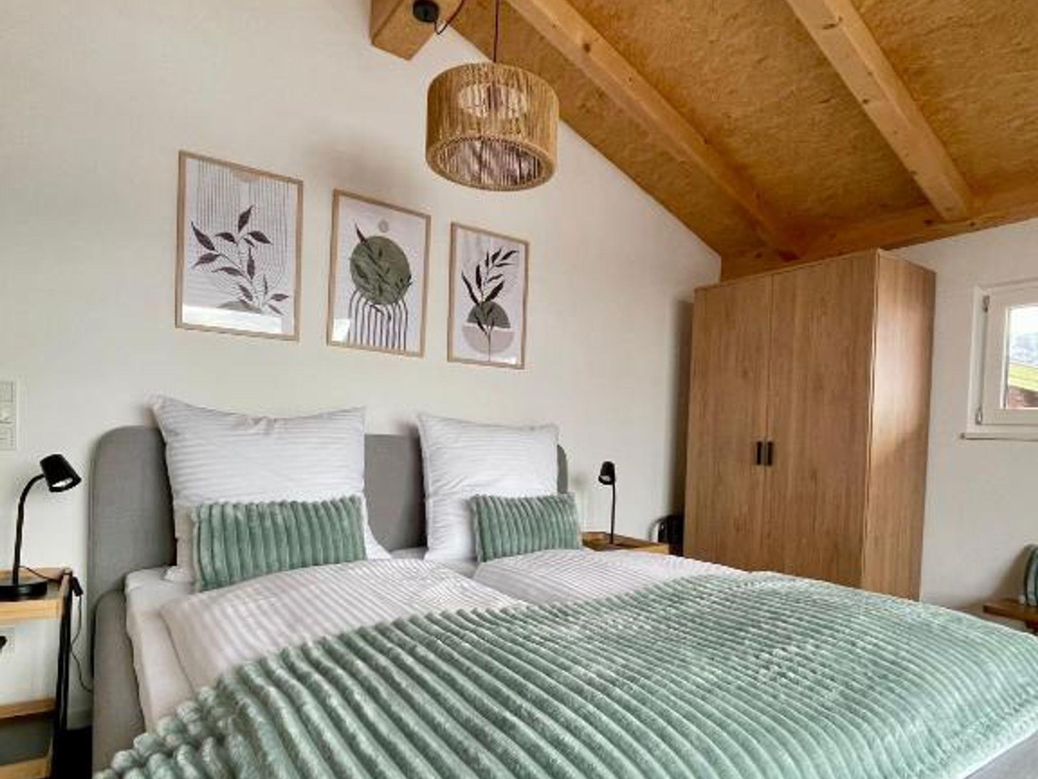 Im Obergeschoss liegt das Hauptschlafzimmer mit Doppelbett, schönem Westbalkon und einem zusätzlichen TV Gerät.