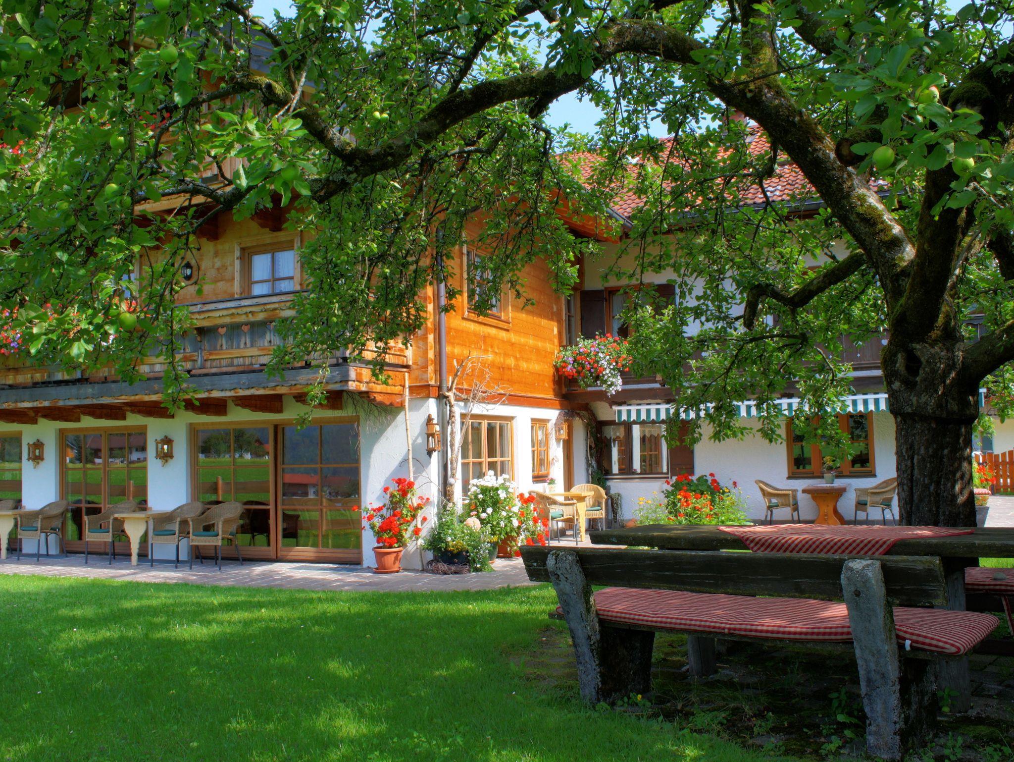 Grüß Gott. Herzlich willkommen in unserer familiär geführten Pension. Fast im Ort, ruhige Südlage, herrlicher Bergblick. Ferienwohnungen in biologischer Holzbauweise (z.Teil mit 2 Bädern - ideal für 2 Ehepaare). Wintergarten zum Wohlfühlen als Aufenthaltsraum. Auftanken in unserer rustikalen Sauna mit Duschgrotte, Ruheraum, Trockenraum, Garage für Fahrräder. Nur wenige Minuten vom Bade- und Kurpark entfernt. Einkaufsmöglichkeit, Wanderwege, Langlaufloipe ab Haus. Wir freuen uns auf Ihren Besuch. Hausprospekt unverbindlich. Nichtraucherhaus, keine Haustiere.
