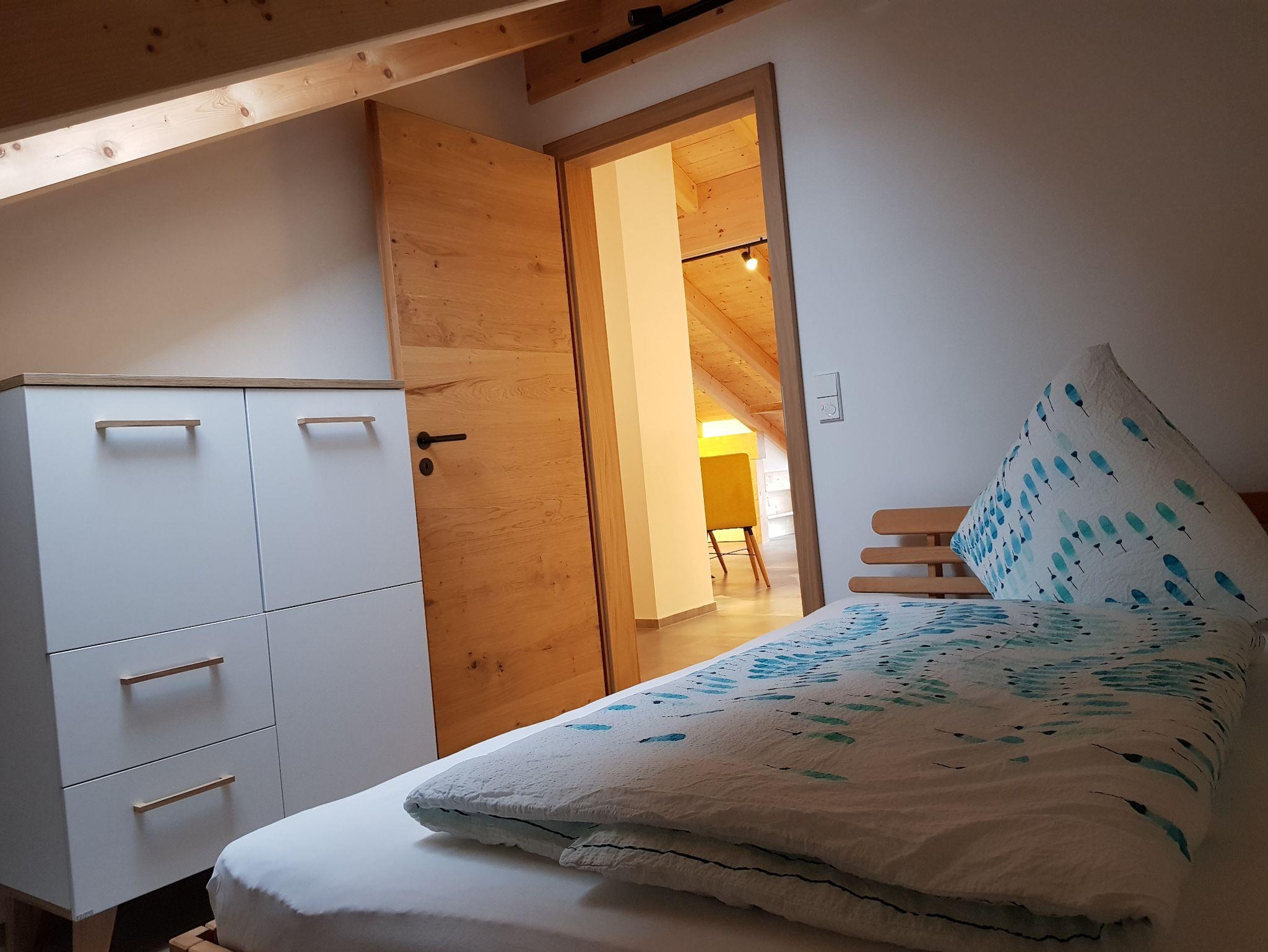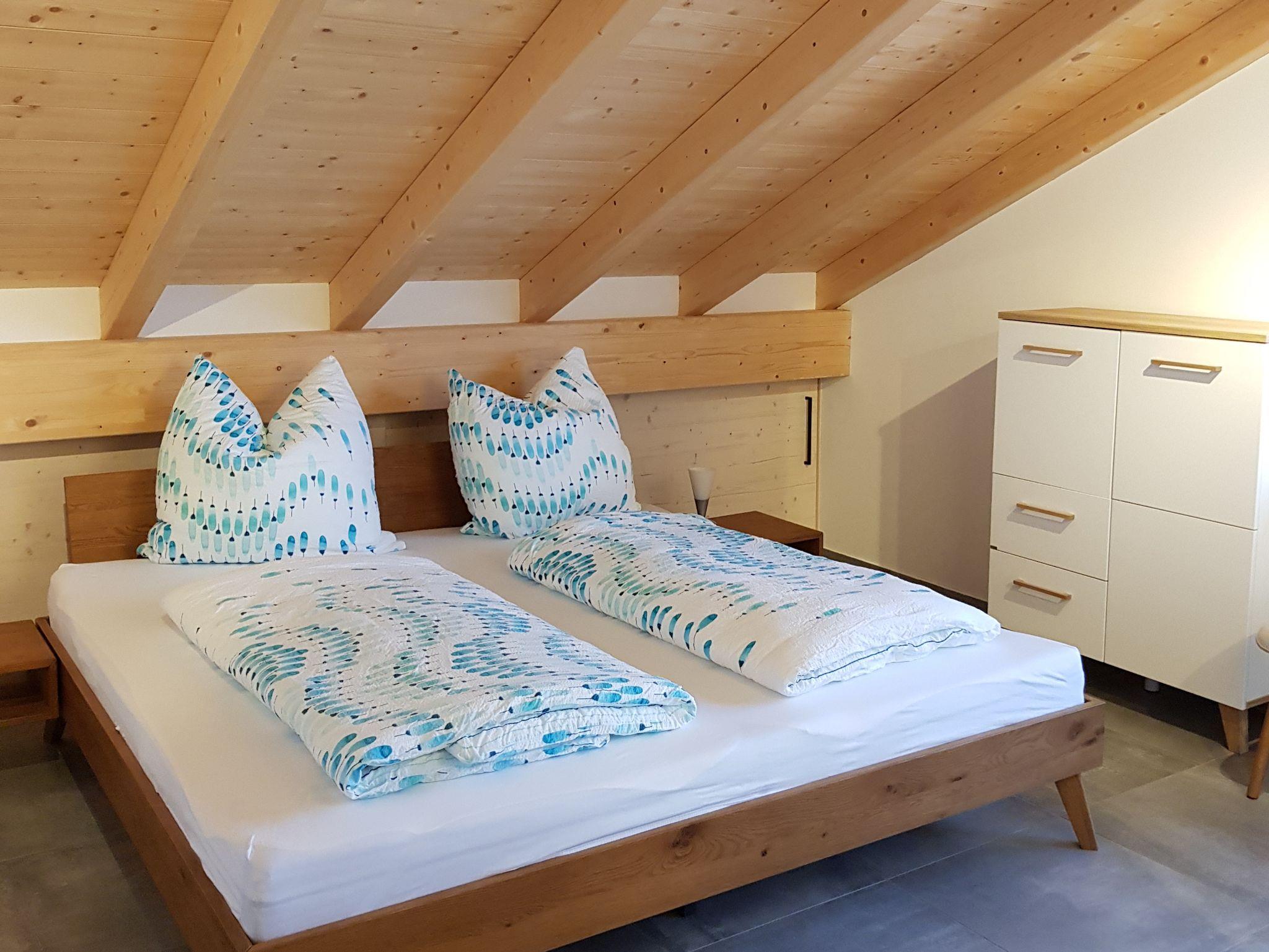 Die Ferienwohnung im 2. OG wurde im Zuge der Sanierungsarbeiten komplett neu erbaut und eingerichtet. Sie umfasst ca. 100 m² Wohnfläche mit Sichtdachstuhl aus unbehandeltem Fichtenholz und bietet Ihnen zwei Balkone, so dass Sie die frische Bergluft genießen können. Sie finden hier eine moderne und hochwertige Ausstattung, die keine Wünsche offen lässt! Genießen Sie gemütliche Abendstunden in der Chill-out-Lounge am Giebel-Fenster, von wo aus Sie einen wunderbaren Bergblick haben.Wir freuen uns darauf, Sie in unserer einmaligen Ferienwohnung begrüßen zu dürfen!