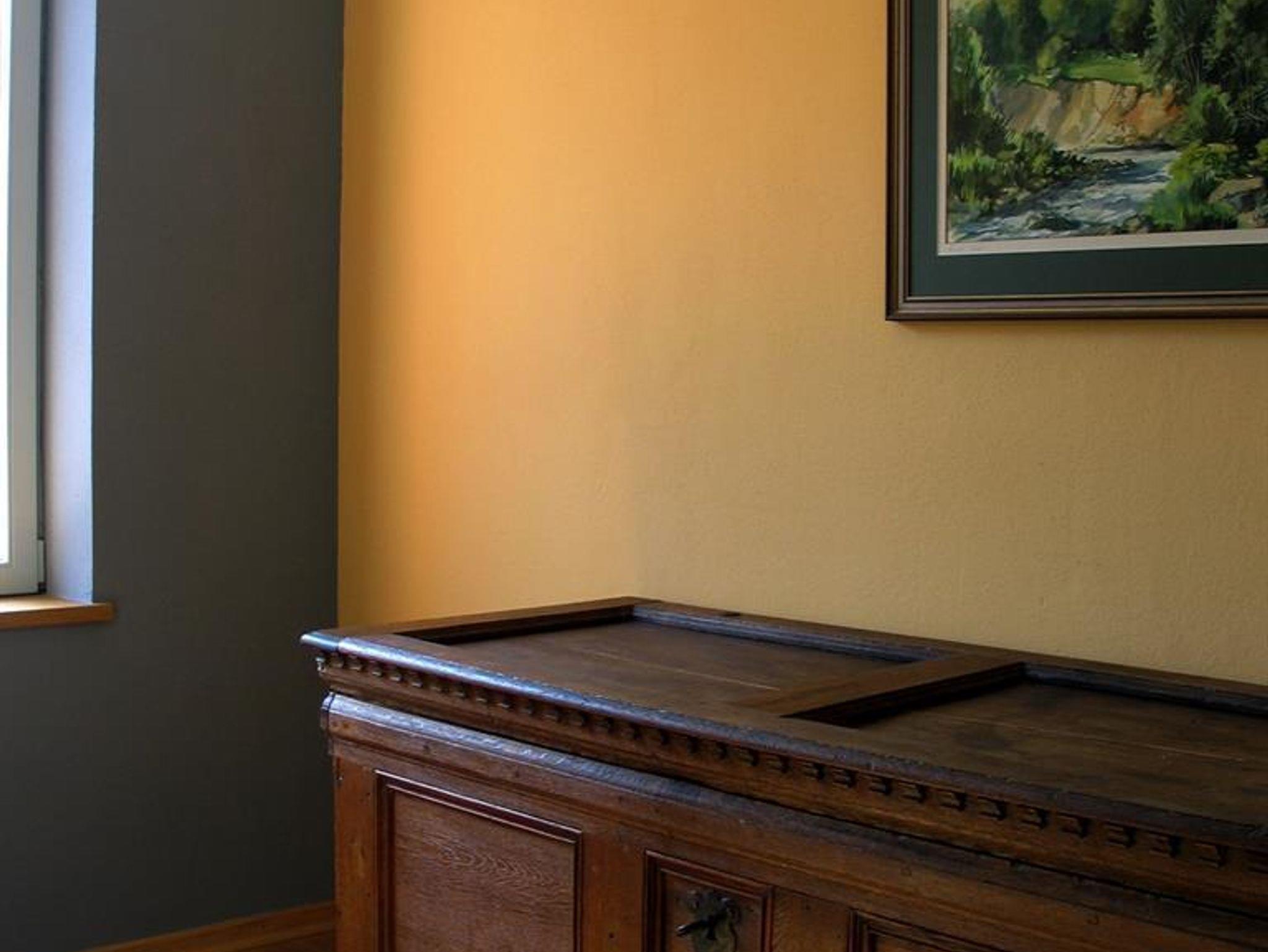 Unsere 60qm große Ferienwohnung für bis zu vier Personen liegt im Erdgeschoss der Irreler Mühle am einstigen Mühlgraben. Die ebenerdig zugängliche und rollstuhlgerecht gestaltete Wohnung verfügt über einen offenen Wohnraum, kombiniert mit familiengerecht ausgestatteter Küche und Essbereich, zwei Schlafzimmer und ein Bad. Eichenholzparkett und Wände in warmen Tönen lassen sie ruhig und edel wirken. Zur hochwertigen Ausstattung zählen Ledersitzmöbel, ein schöner alter Bauernschrank und ein massives Eichenholzbett mit angenehmer Höhe.