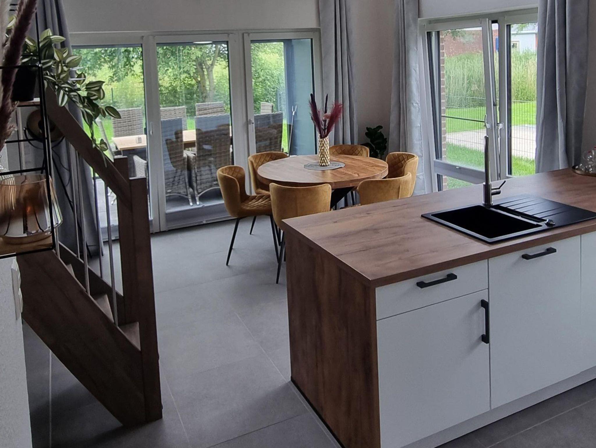 Modernes Ferienhaus Brandungsperle bei Jade-Sehestedt mit großem Garten, Sauna, Spielbereich und direkter Deichnähe.
