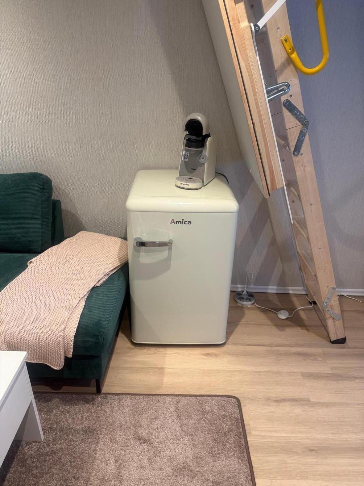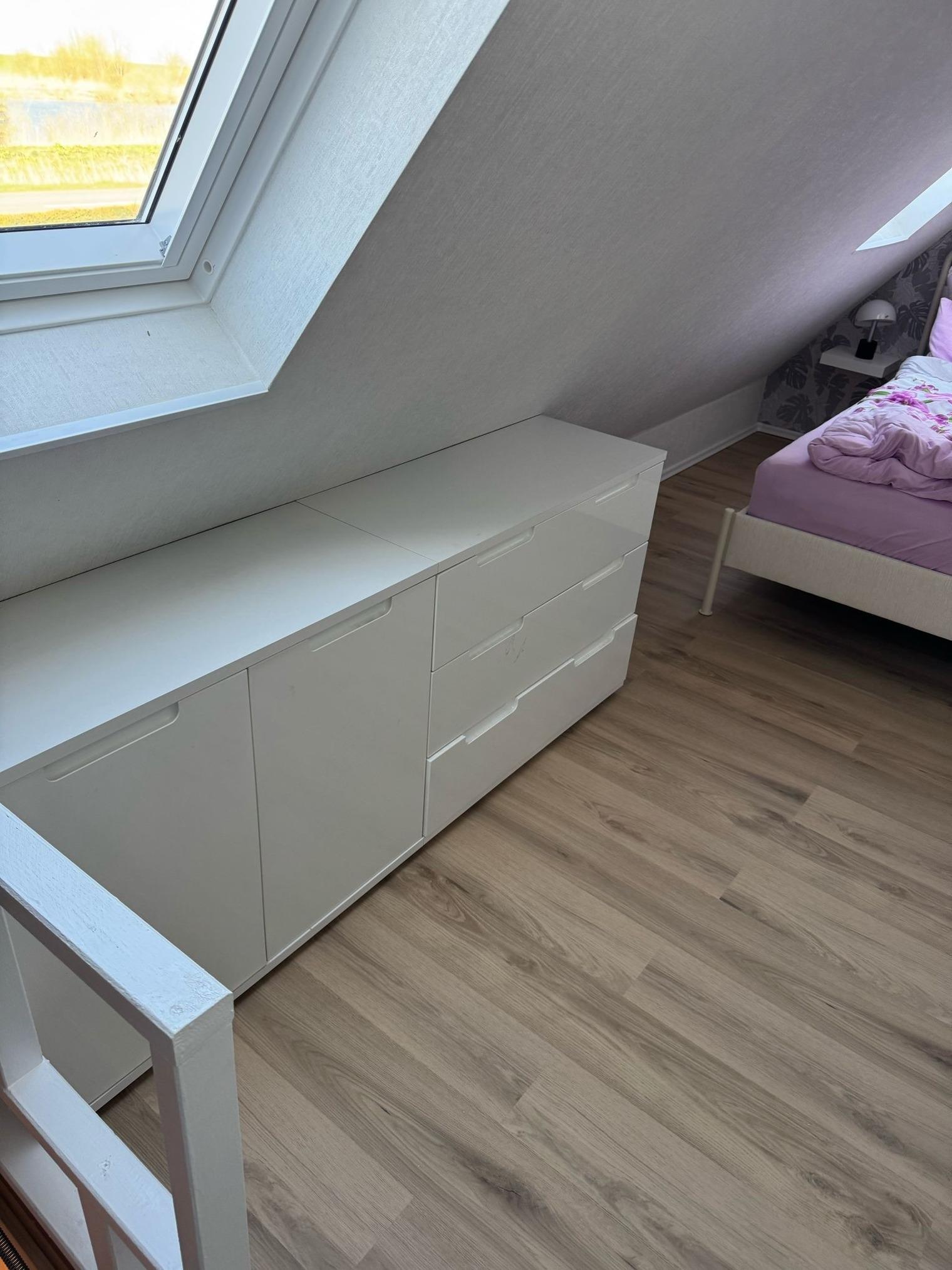- Schlafzimmer mit einem 160?cm breiten Doppelbett (offenes Fußteil ideal auch für größere Gäste), über eine Falltreppe zu erreichen
