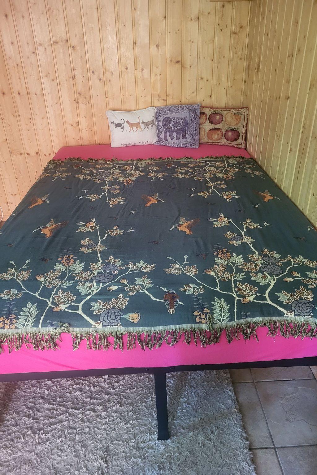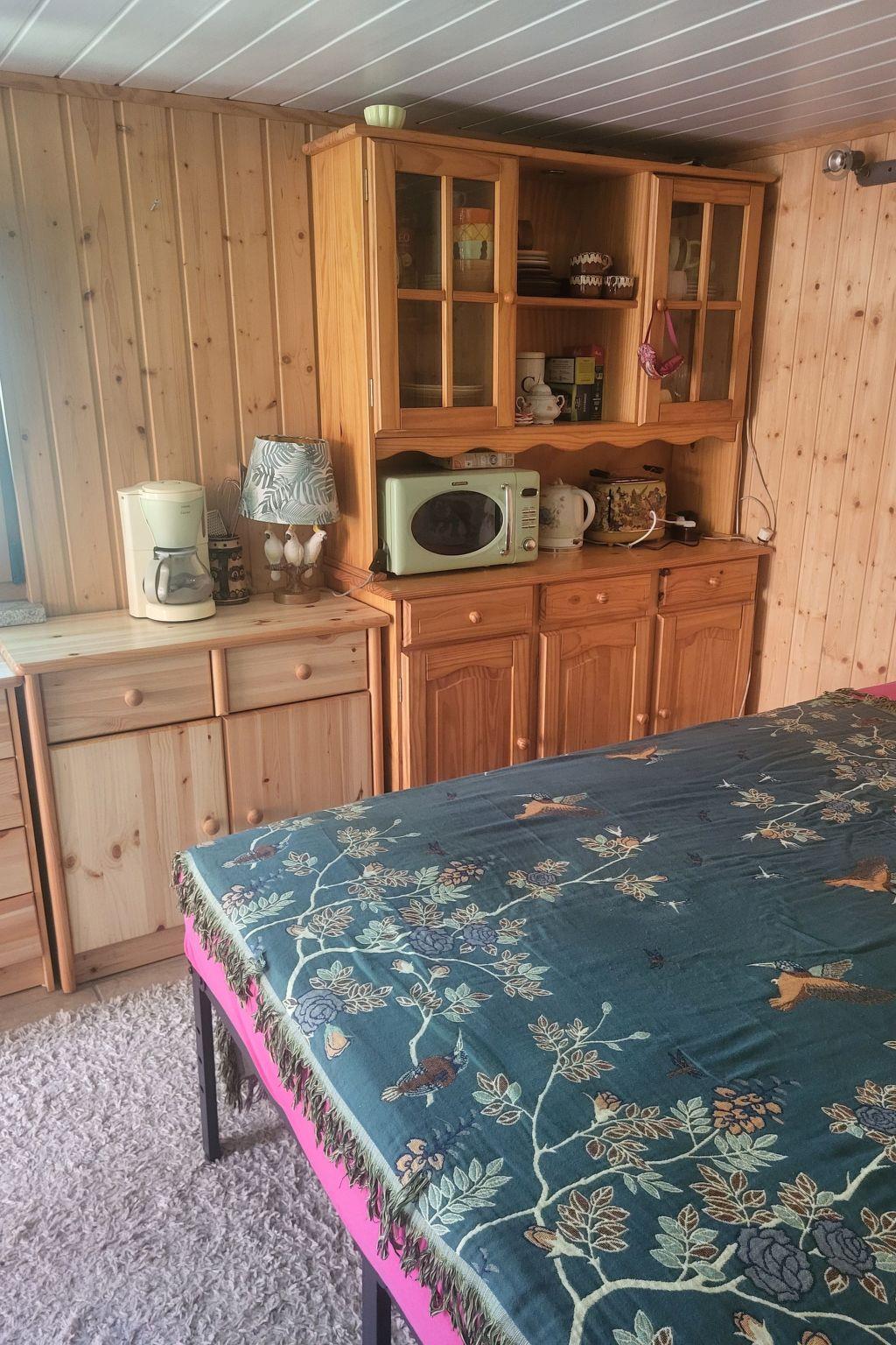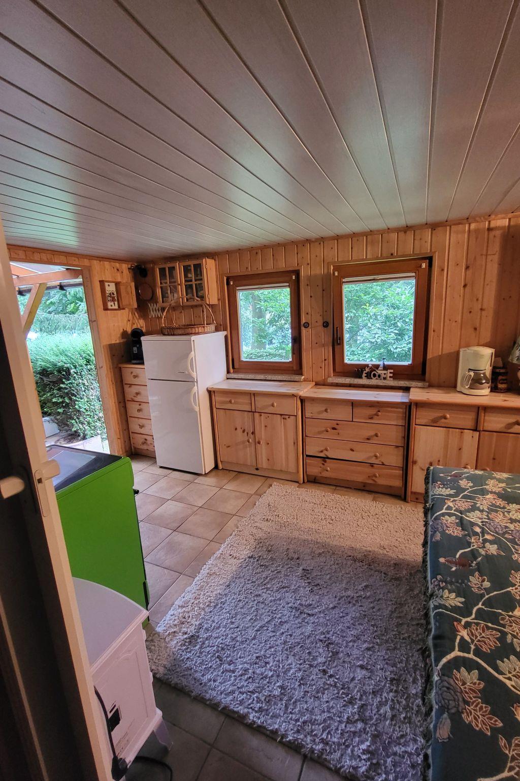 Im Inneren des Häuschens erwartet Sie ein gemütliches Ambiente mit einem effizient gestalteten Wohnraum. Das Häuschen bietet Platz für bis zu vier Personen mit einem komfortablen Doppelbett im Wohnbereich und zwei Einzelbetten, ideal für Familien oder kleine Gruppen. Zur Ausstattung gehören zudem eine voll ausgestattete Küchenzeile mit Filter-Kaffeemaschine, Wasserkocher und Spülmaschine sowie ein Badezimmer mit Dusche. Trotz seiner kompakten Größe fehlt es an nichts für einen sorglosen Aufenthalt.