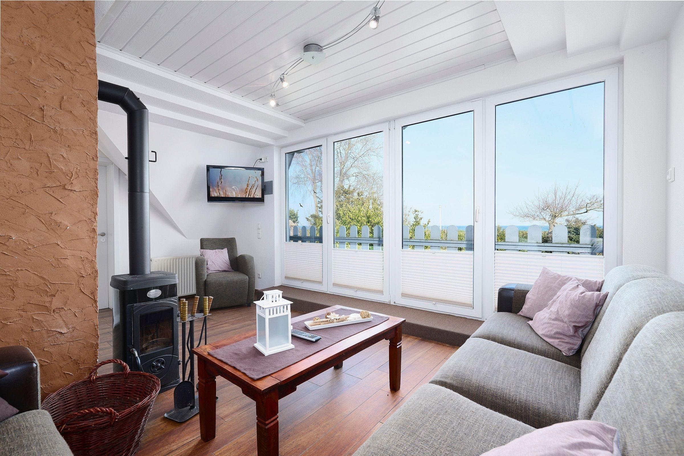 Ferienhaus Käptn´s Huus in Kalifornien mit Meerblick, Sauna, Kamin und großem Garten für entspannte Strandtage.