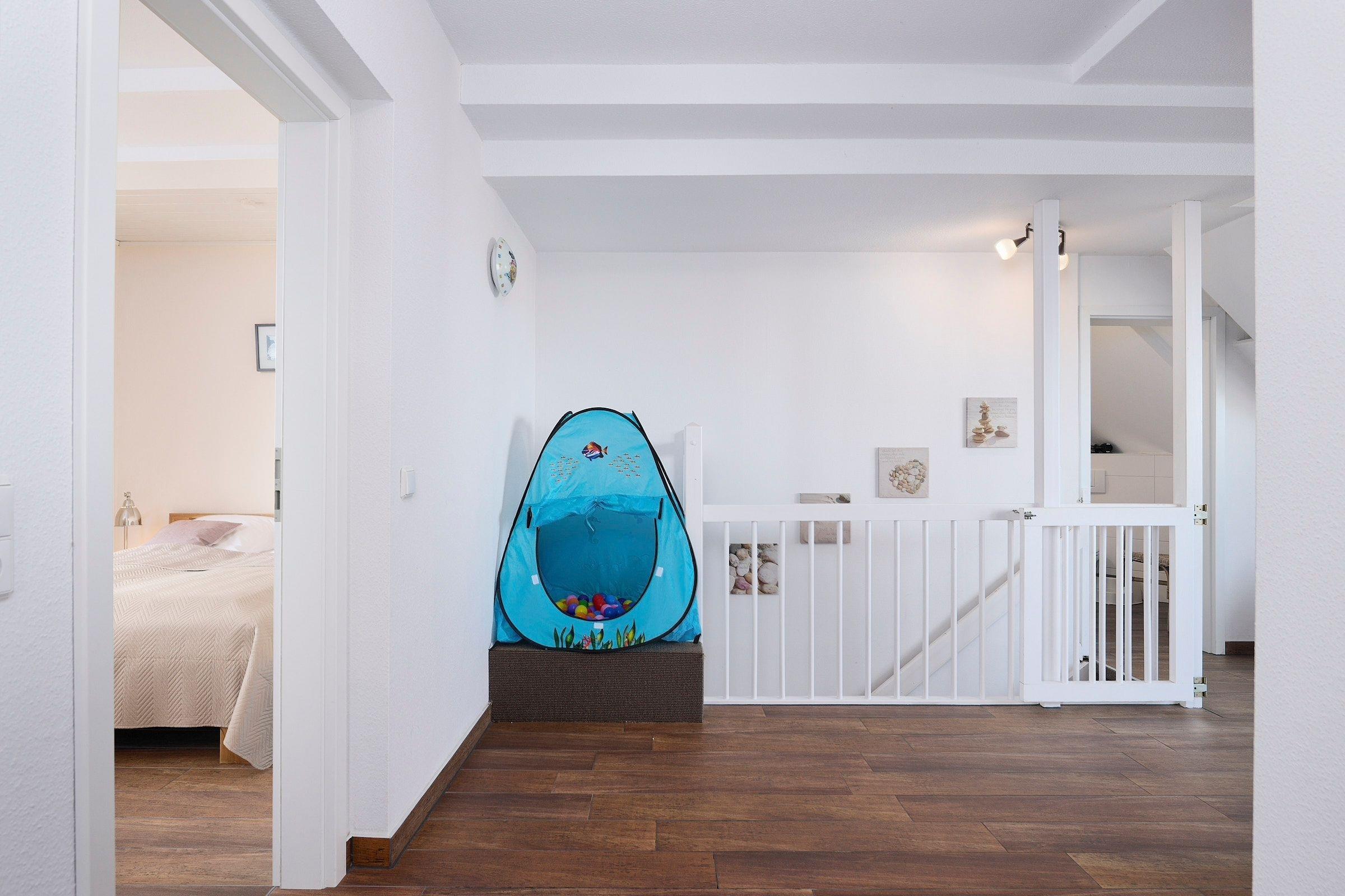 Die kleinen Gäste können sich beim kreativen Spielen im Haus mit "Käptn´s Corner", Bücherecke, Spielesammlung oder im Garten beim Schaukeln oder in der Sankiste ordentlich austoben. 2 Kinderhochstühle stehen hier kostenfrei bereit.