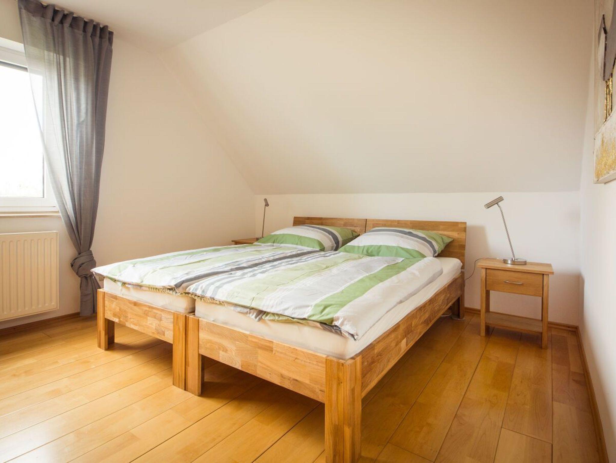 das Dachgeschoss, welches ebenfalls mit 2 Einzelbetten, TV, Sessel und Leseecke