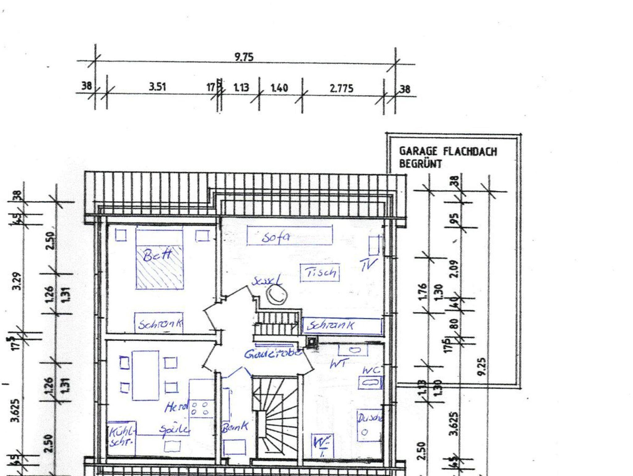 und Dunstabzug, Backofen, Spülmaschine, Kühlschrank mit Gefrierfach, Radio,