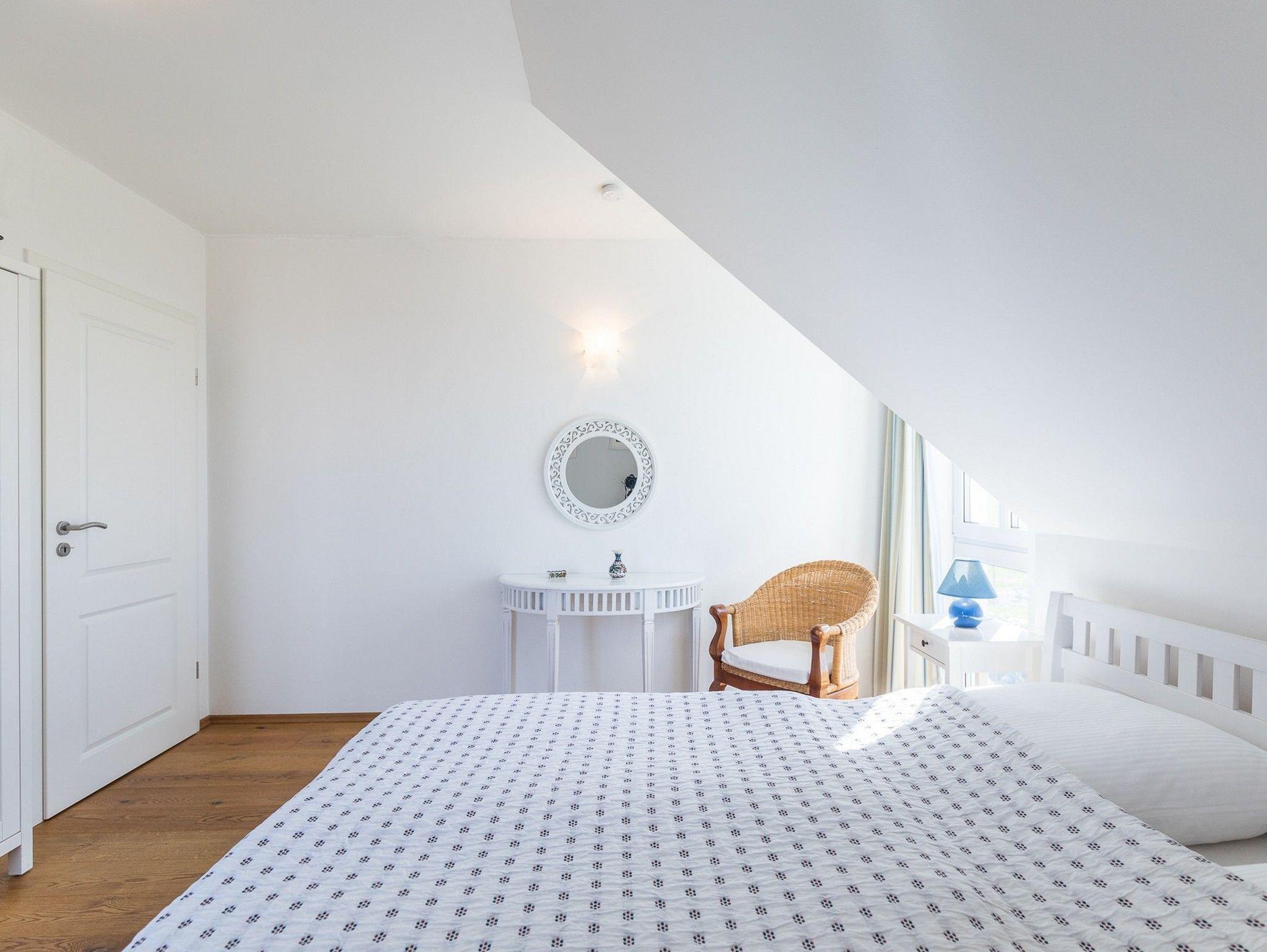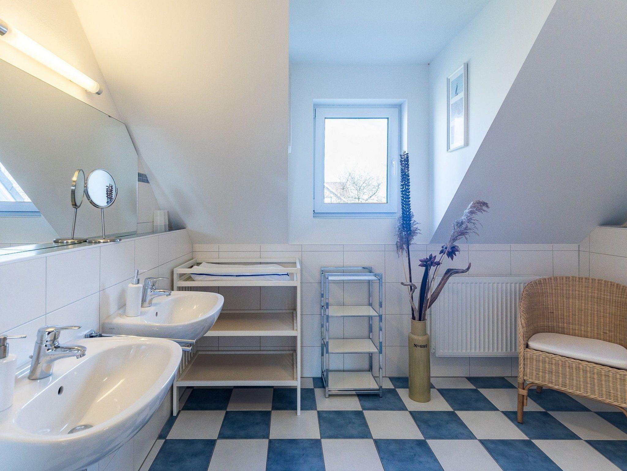 Im 1. Obergeschoss befinden sich zwei weitere Schlafzimmer (ein Schlafzimmer mit zwei Einzelbetten und TV und ein Schlafzimmer mit einem Doppelbett), vollständig und geschmackvoll möbliert sowie das freundliche, helle Duschbad mit WC und 2 Handwaschbecken.