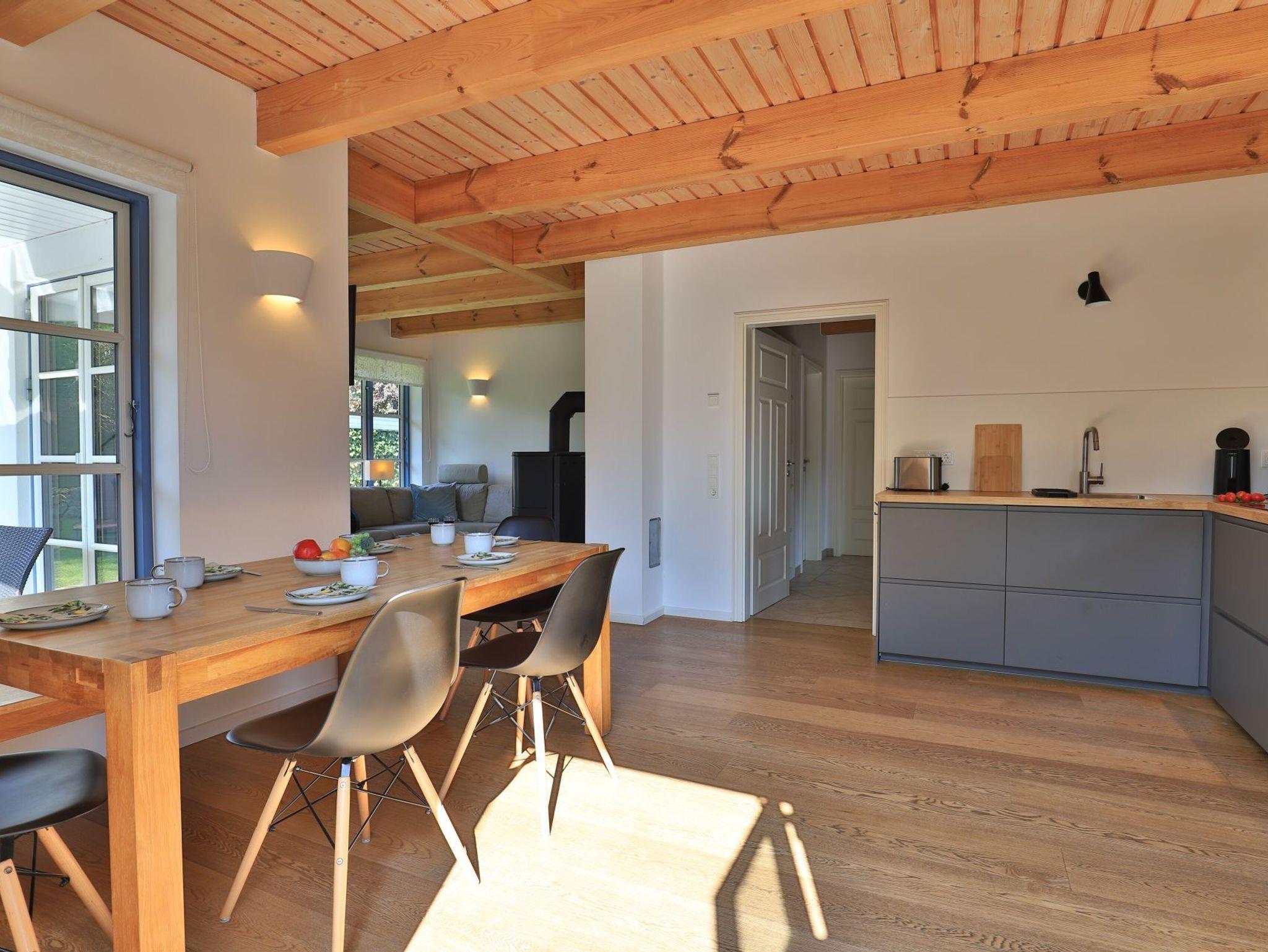 Modernes Ferienhaus mit Sauna und Kamin, nur 800 Meter vom Naturstrand Groß Schwansee entfernt.