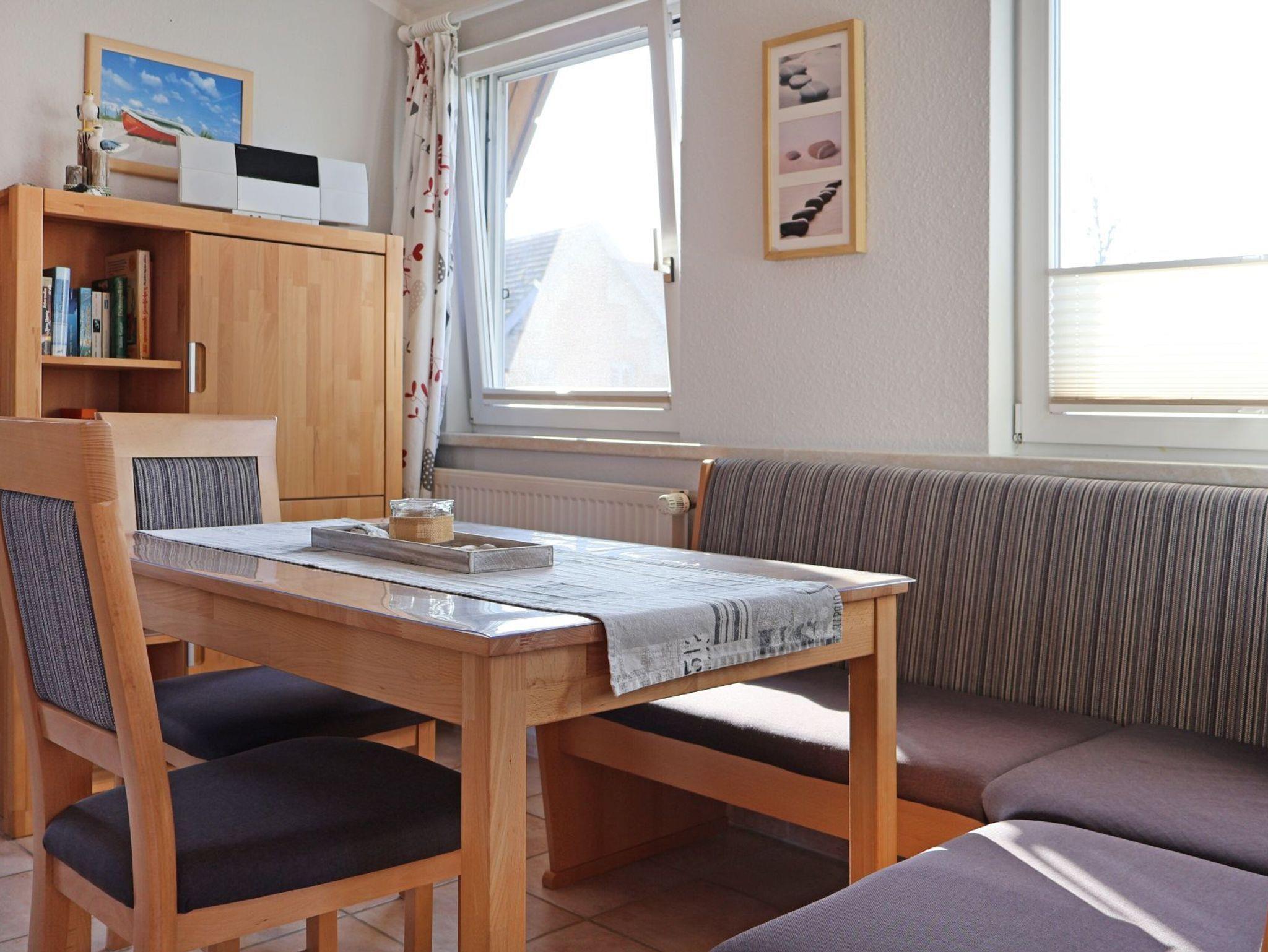 Das gut ausgestattete 3-Zimmer Dachgeschoss Appartement besitzt eine Wohnfläche von 55qm und ist ideal für einen Urlaub mit bis zu 3 Personen. Sie erreichen die Wohnung über eine Treppe. Im Wohn-/Essbereich sind eine Sofagarnitur, zwei Sessel, Fernseher vorhanden. WLAN steht ohne Gebühr zur Verfügung. Selbstversorgern bietet eine Einbauküche gute Bedingungen mit: Ceranfeldherd, Backofen, Mikrowelle, Kühlschrank mit sep. Gefrierfach, Kaffeemaschine, Wasserkocher, Toaster, Geschirrspüler u.v.m. Ihre Mahlzeiten nehmen Sie am Esstisch zu sich. Ebenso können Sie den hauseigenen Garten mitnutzen.