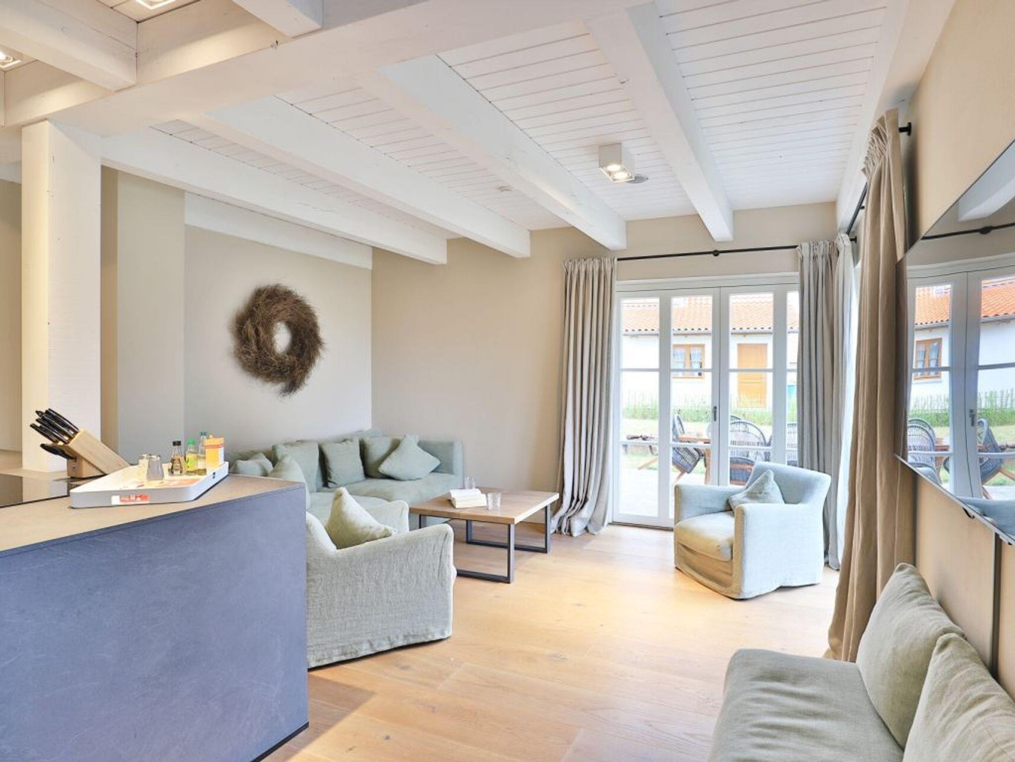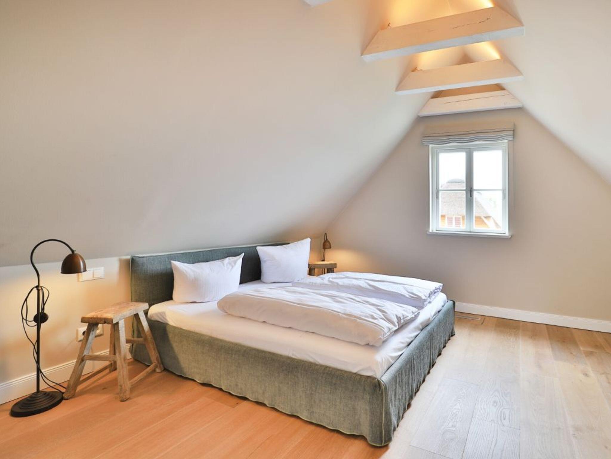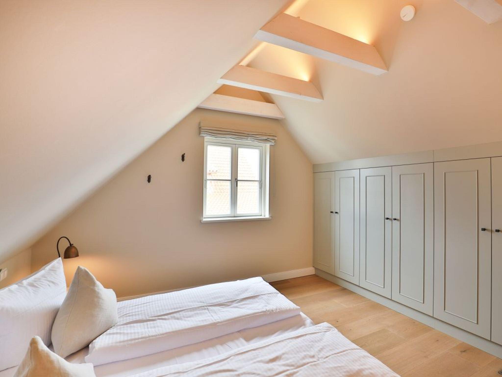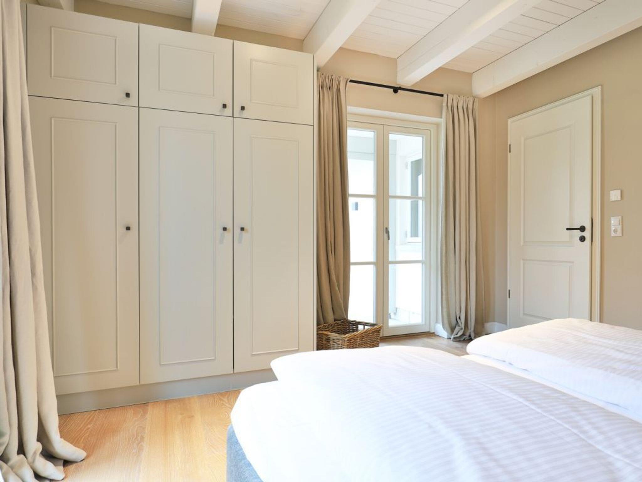 Auch von diesem Schlafzimmer gelangen Sie auf die Terrasse. Zudem befindet sich auf dieser Wohnebene ein modernes Tageslicht Duschbad. Über den Wohnungsflur erreichen Sie über eine leicht geschwungene Treppe das Obergeschoss, wo sich zwei weitere Schlafzimmer einmal mit Doppelbett und das weitere Schlafzimmer mit zwei Einzelbetten und einer zusätzlichen Schlafgelegenheit befinden. Alle drei Schlafzimmer bieten Kleiderschränke mit viel Stauraum für Ihre Urlaubsgarderobe. Die obere Ebene besitzt zudem ein modernes Tageslicht Vollbad mit Badewanne, Dusche und guten Ablagemöglichkeiten für Ihre Kosmetikartikel. Der inklusive Service umfasst auch die Nutzung von Kinderhochstuhl und einem Kinderreisebett.