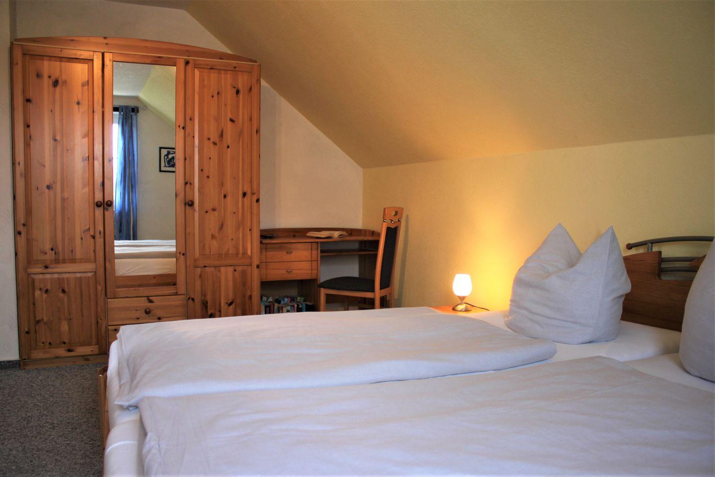 Im zweiten Schlafraum befinden sich zwei Einzelbetten und ein Kleiderschrank. Eine weitere Person findet auf dem ausziehbaren Sofa im Wohnzimmer einen bequemen Schlafplatz.