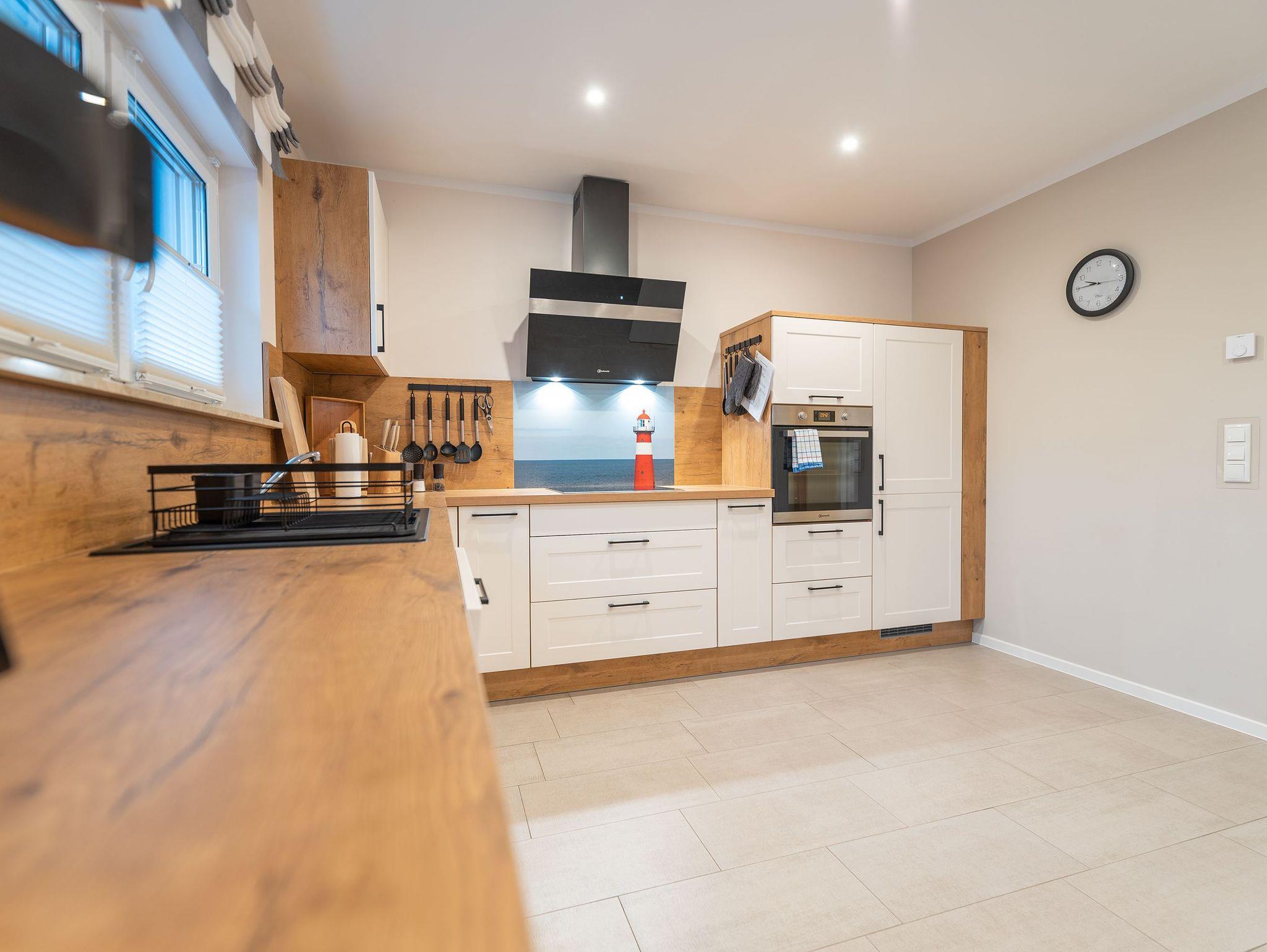 Die voll ausgestattete Küche lässt keine Wünsche offen und verfügt über alle Annehmlichkeiten wie Geschirrspüler, Mikrowelle, Induktionsherd, Kaffeemaschine, Toaster, Wasserkocher und eine Kühl-/Gefrierkombination. Zwei separate Schlafzimmer bieten ruhige Rückzugsorte: eines mit einem KingSizeBett, Kommode und Fernseher; das andere mit einem Doppelbett und Kleiderschrank. Für zusätzliche Gäste bietet die Schlafcouch im Wohnzimmer Platz für zwei Personen. Für Unterhaltung sorgen die Fernseher mit kostenfreiem Zugang zu Netflix und Disney+.