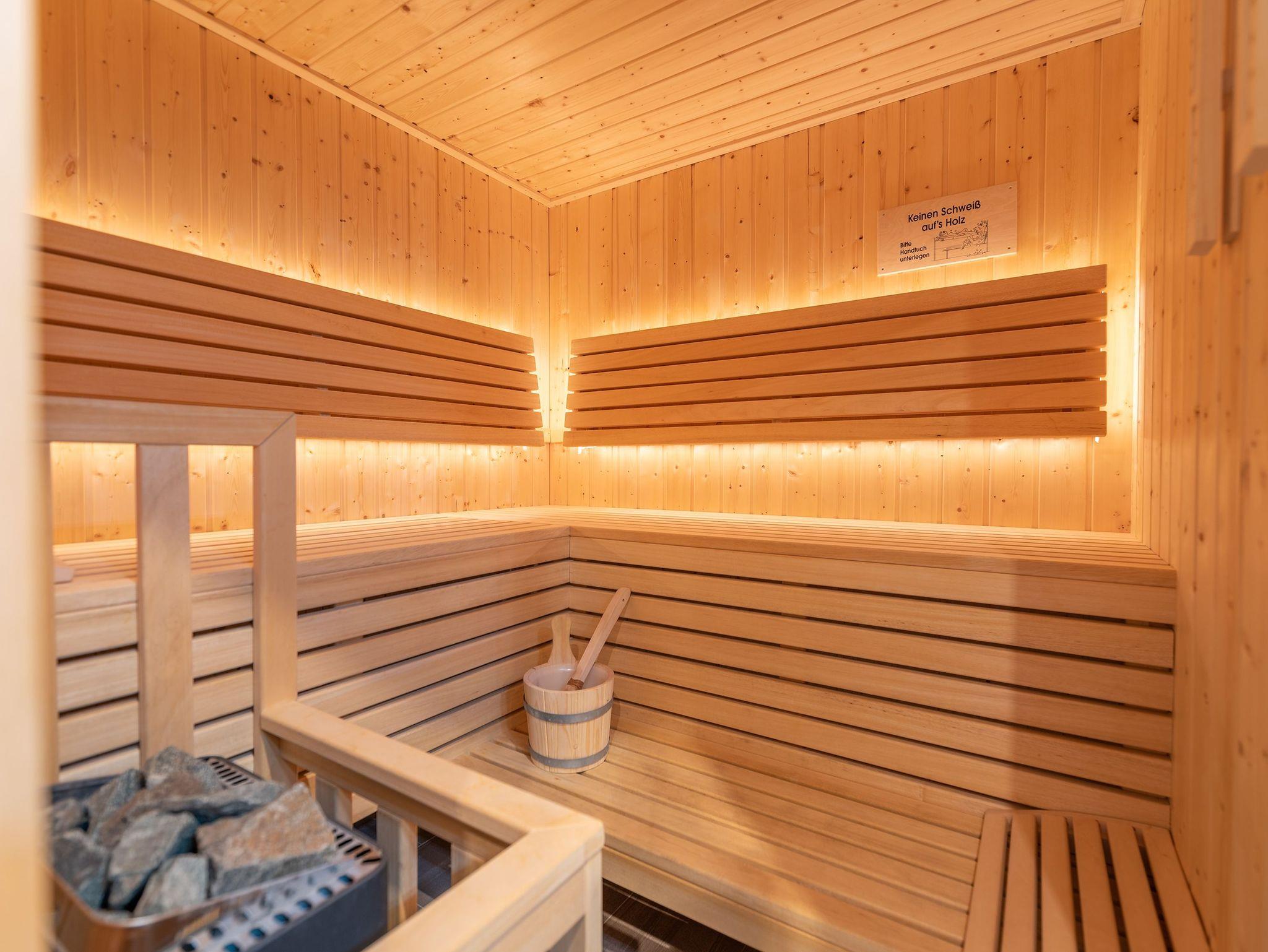 Das Gäste-WC verfügt über eine Toilette und einen Waschtisch mit Spiegel, während das große Badezimmer mit einer Badewanne, einer Regendusche, einem Waschtisch mit Spiegelschrank und der Sauna ausgestattet ist. Für die kleinsten Gäste können auf Anfrage ein Reisebett mit Matratze, ein Hochstuhl sowie eine Spielzeugkiste und Strandspielzeug bereitgestellt werden.