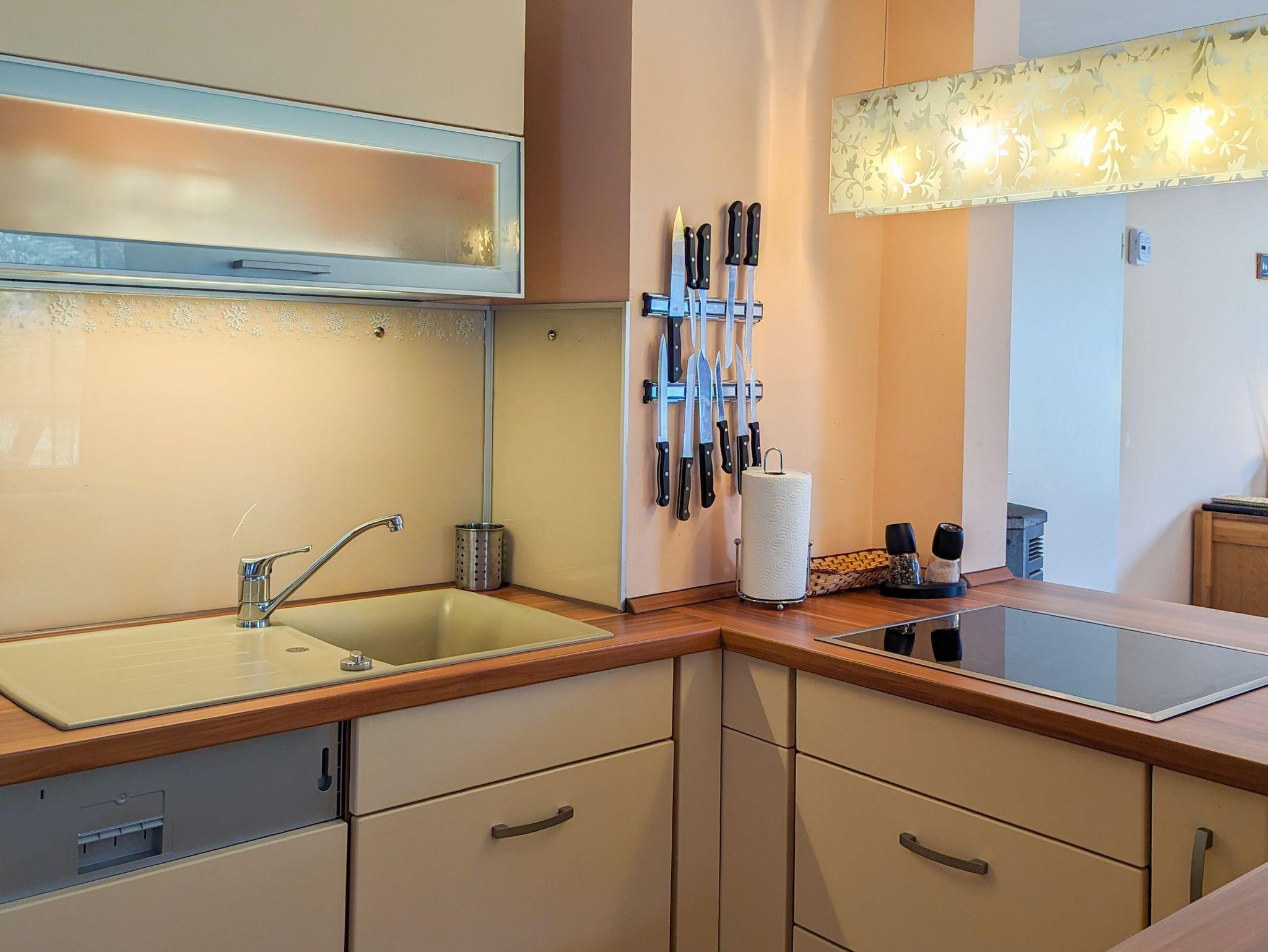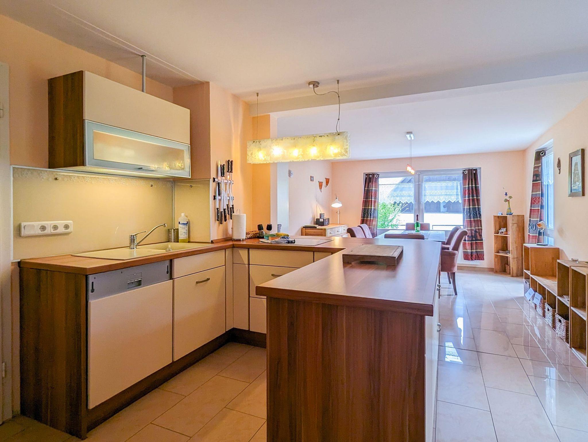 Die Küche bietet viel Platz und Möglichkeiten, um gemeinsam zu kochen und Zeit zu verbringen. Auf der Sonnenterrasse kann gemeinsam gespielt und entspannt werden, im Übergang zum naturbelassenen Garten. Für Entertainment sorgt ein moderner Smart-TV, sowie ein Radio mit CD-Player und einige Bücher. WLAN gibt es kostenfrei in allen Räumen.
