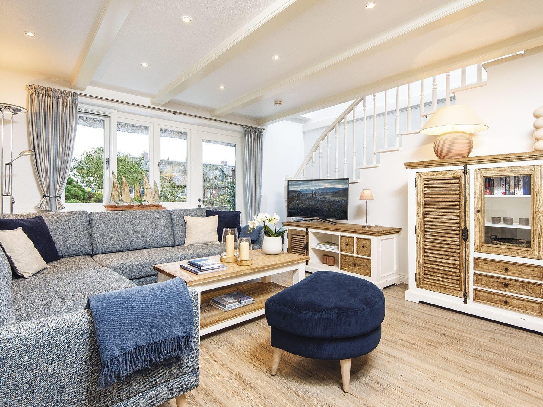 Modernes und maritim eingerichtetes Ferienhaus in ruhiger Lage in Kampen mit Südterrasse und Gemeinschaftsgarten.