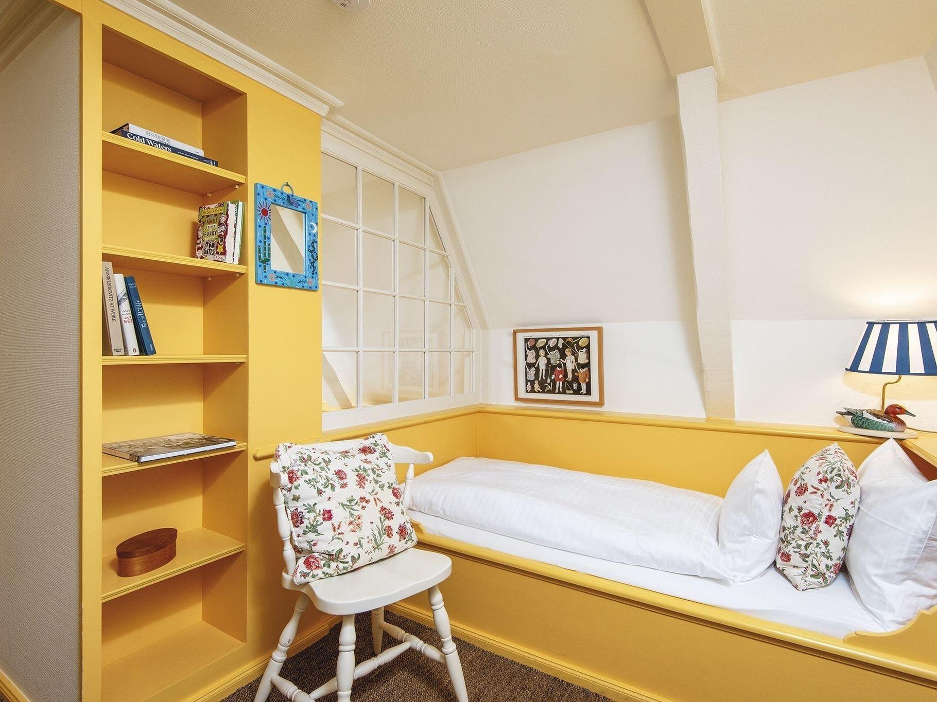 In einem traumhaft eingewachsenen Garten liegt dieses wunderschöne Hausteil klassisch unter Reet. Sehr individuell und harmonisch zusammengestellt sind antike Einbauten mit Neuem kombiniert. Im Erdgeschoss finden Sie eine heimelige Küche in friesischblau mit Delfter Kacheln und modernen Elektrogeräten. Ein schöner Essbereich mit Blick in den Garten und Zugang zur Terrasse lädt zum geselligen Frühstückstreff mit der gesamten Familie ein. Das Wohnzimmer mit gemütlichen Sofas vor dem Kamin und hübscher Leseecke an der Fensterfront, sowie ein Gäste-WC befinden sich ebenfalls auf dieser Ebene. Im Obergeschoss sind zwei Doppelschlafzimmer, sowie ein Duschbad und ein Wannenbad. Die Farbkombination in den Schlafzimmern geht von modernen Grautönen hin zu den Schrankeinbauten in Korallenrot, kombiniert mit Messing - einfach stilvoll. Noch ein Stockwerk höher finden Sie ein kuscheliges Dachzimmer mit zwei Einzelbetten. Die Treppen und Schlafräume sind mit Teppichboden ausgelegt.