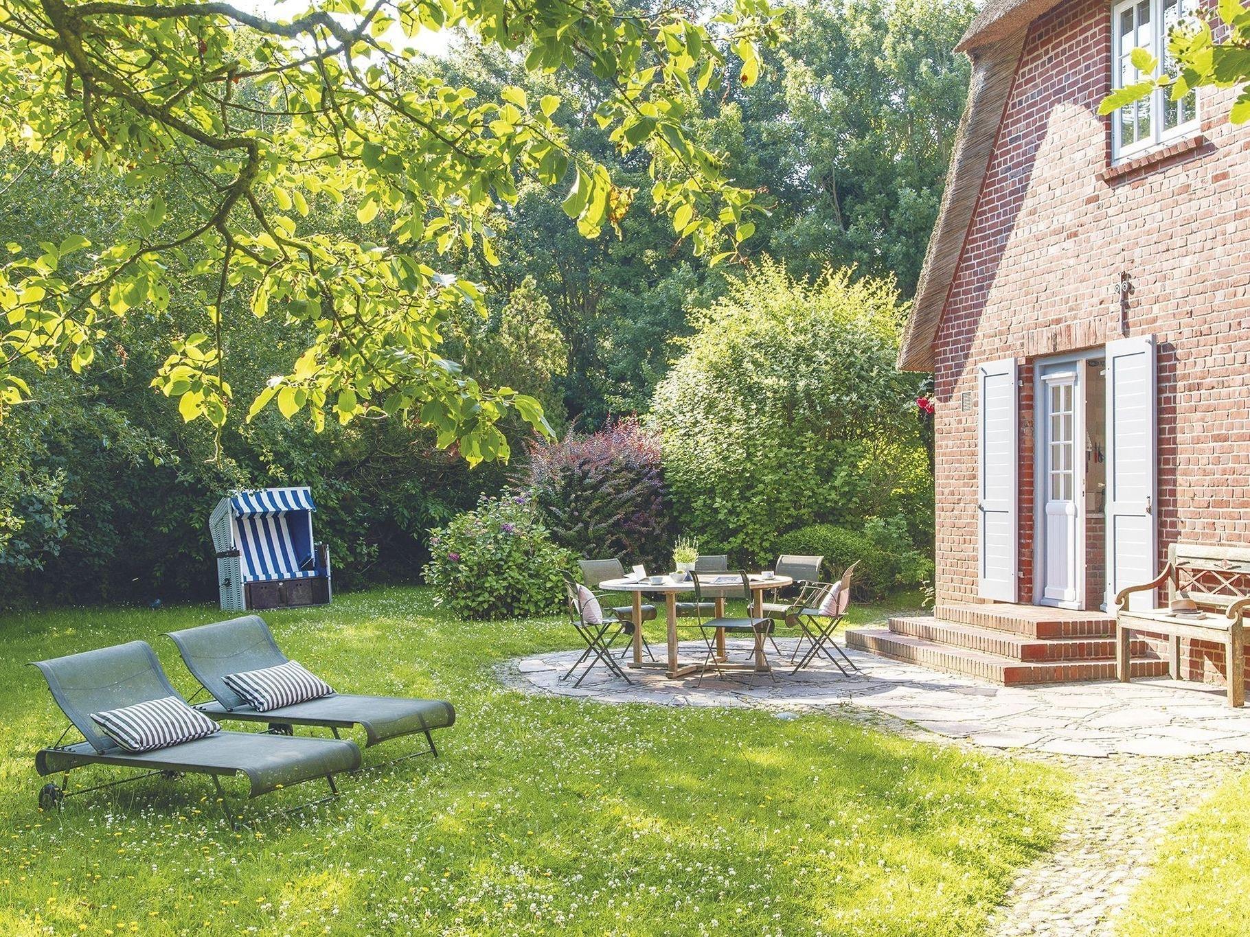 Charmantes Reetdachhaus in Kampen mit antikem Flair, Garten, Kamin und moderner Ausstattung für erholsamen Urlaub.