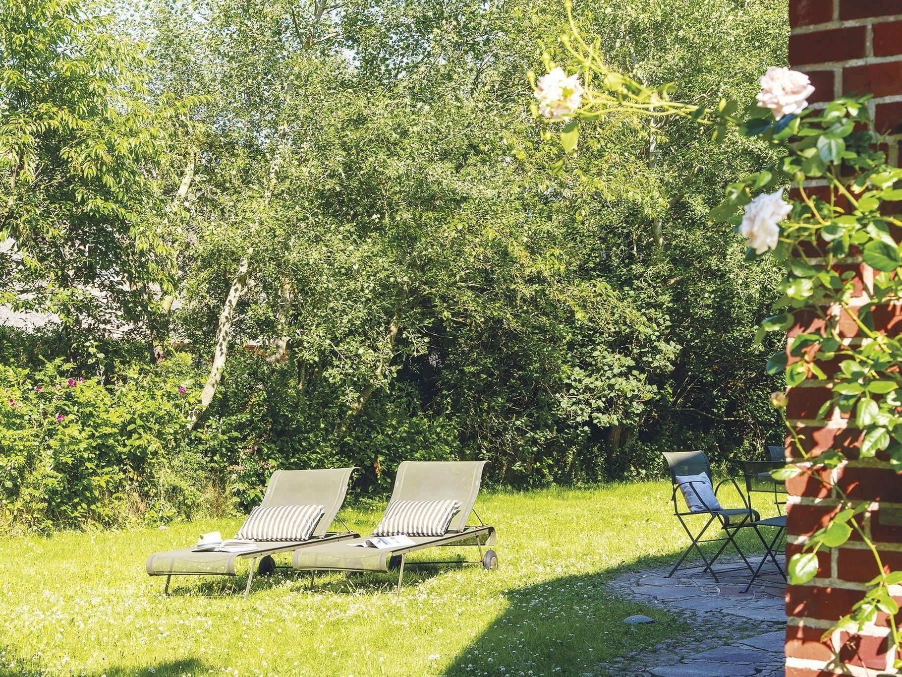 Charmantes Reetdachhaus mit Garten und Kamin in Kampen auf Sylt, ideal für Familien und Urlaub am Meer.