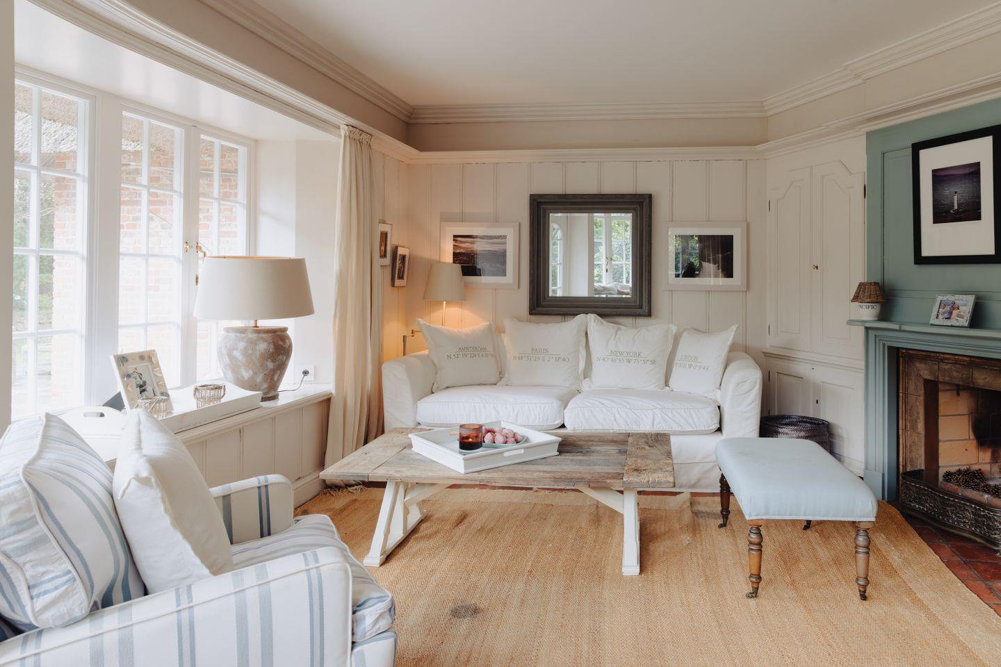 Beide Wohnzimmer verfügen über offene Kamine, die an kühleren Abenden eine warme und behagliche Atmosphäre schaffen.