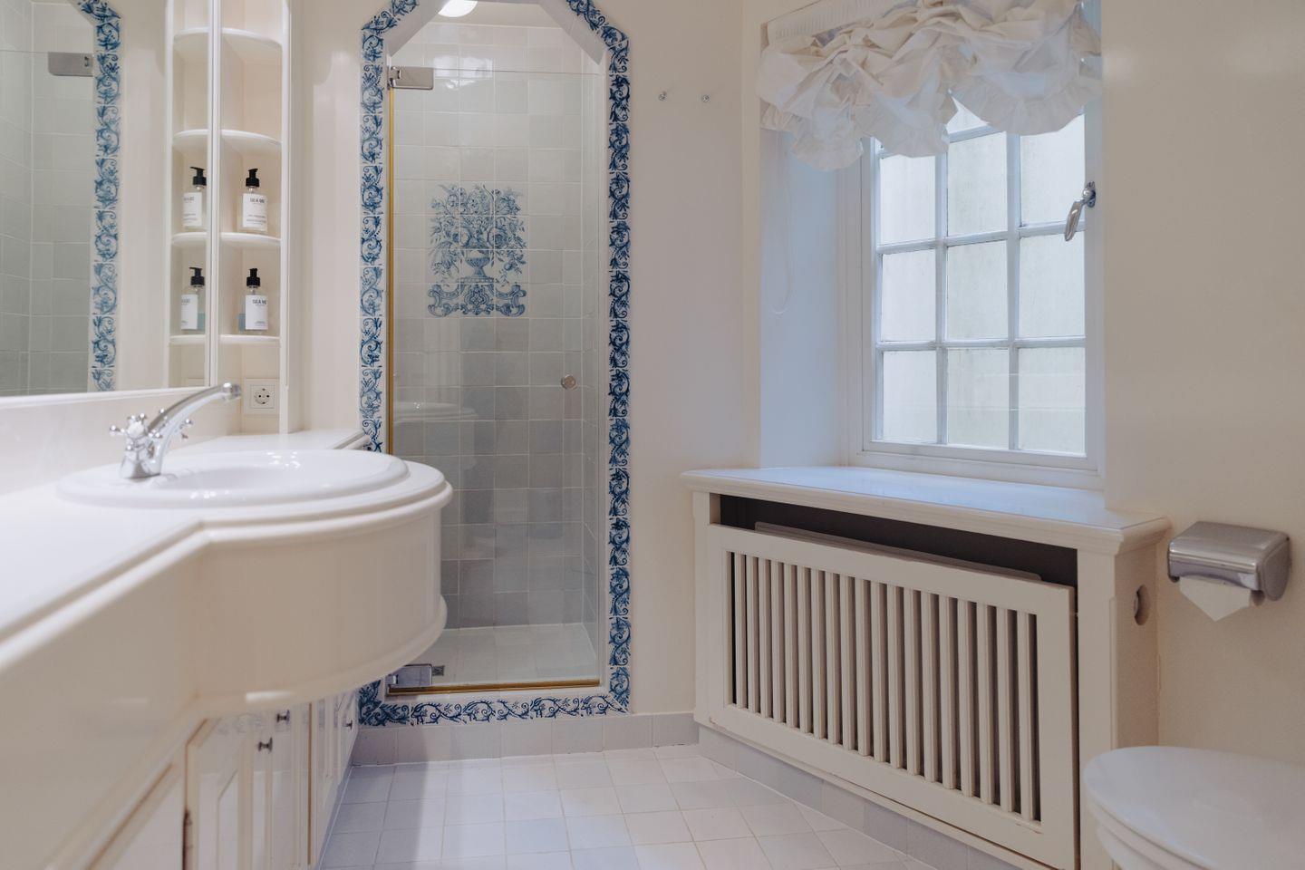 Zwei weitere Bäder sind mit komfortablen Duschen ausgestattet, die ebenfalls mit kunstvollen Fliesen verziert sind und ein besonderes Duscherlebnis bieten.
