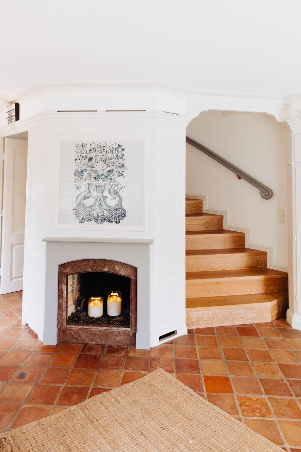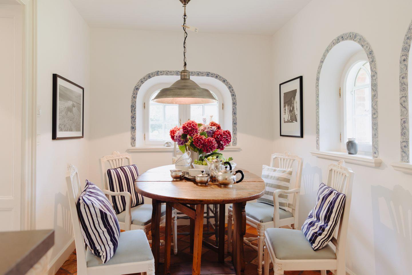 Die kunstvollen blauen Fliesenmuster bringen eine warme und einladende Stimmung in die Räume, sodass man sich sofort wohlfühlt.