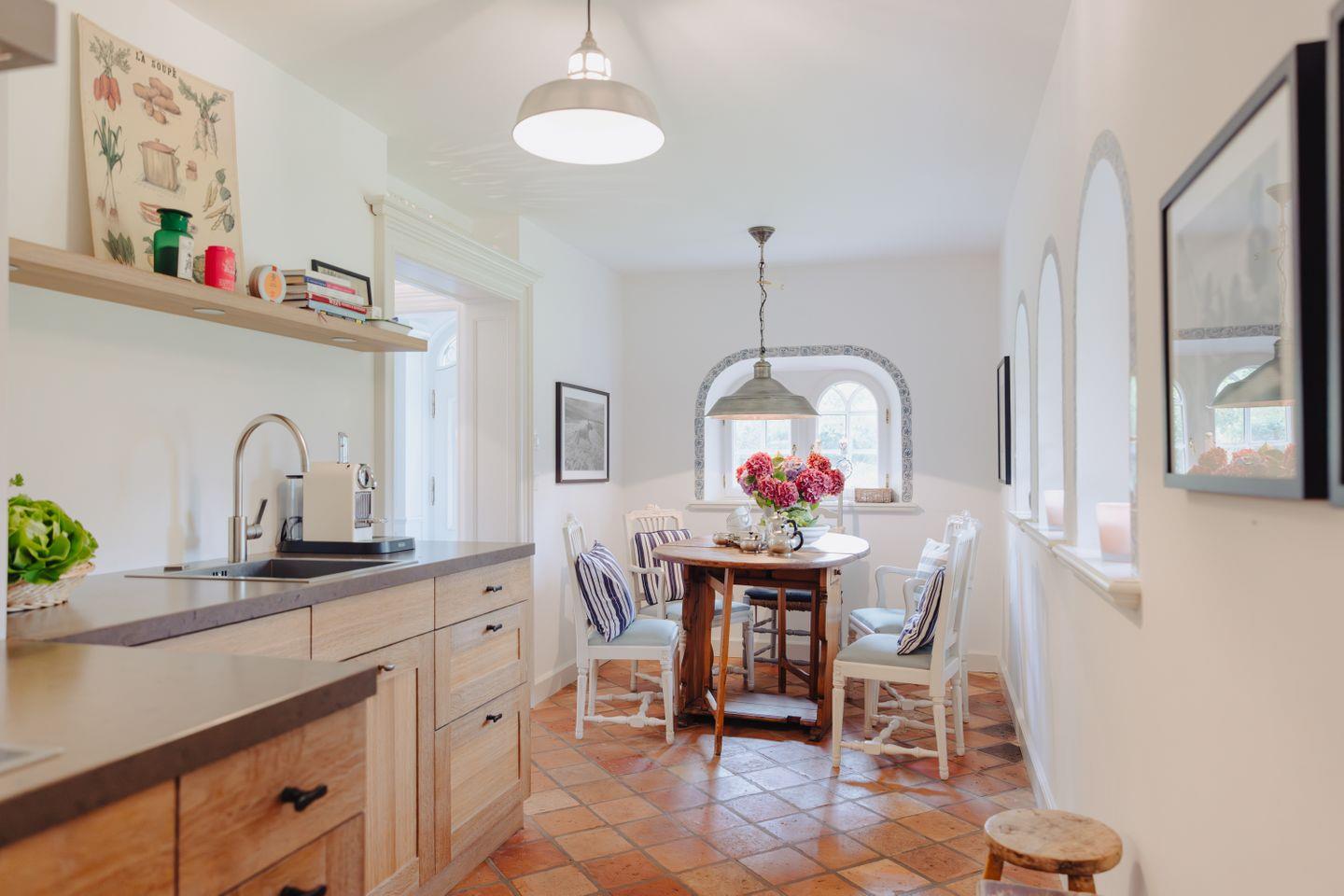 Das Herzstück des Hauses ist die großzügige Küche, die sich zwischen zwei gemütlichen Wohnzimmern befindet.
